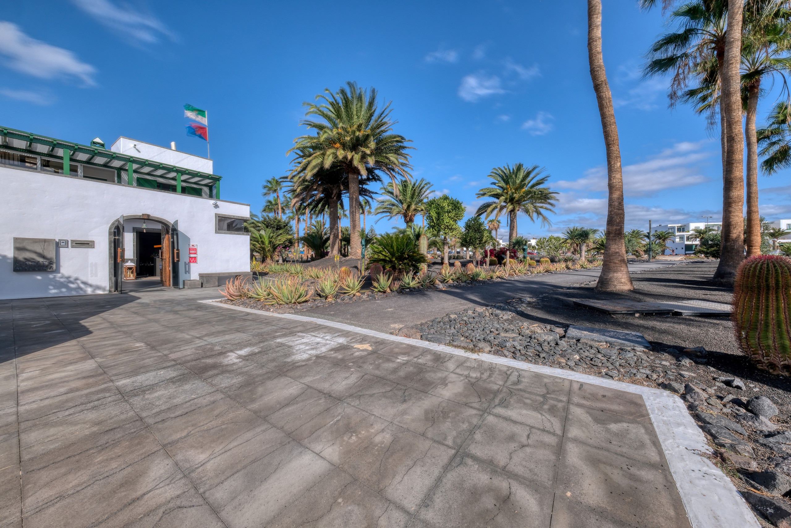 La joya de la vivienda es su amplia terraza privada, equipada con tumbonas para tomar el sol y una agradable zona de comedor exterior, ideal para disfrutar del clima canario durante todo el año. El complejo cuenta con una espectacular piscina comunitaria diseñada también por César Manrique, además de una piscina secundaria vallada con horario de 8:00 a 18:00, perfecta para mayor seguridad. También hay un parque infantil, ideal para los más pequeños.