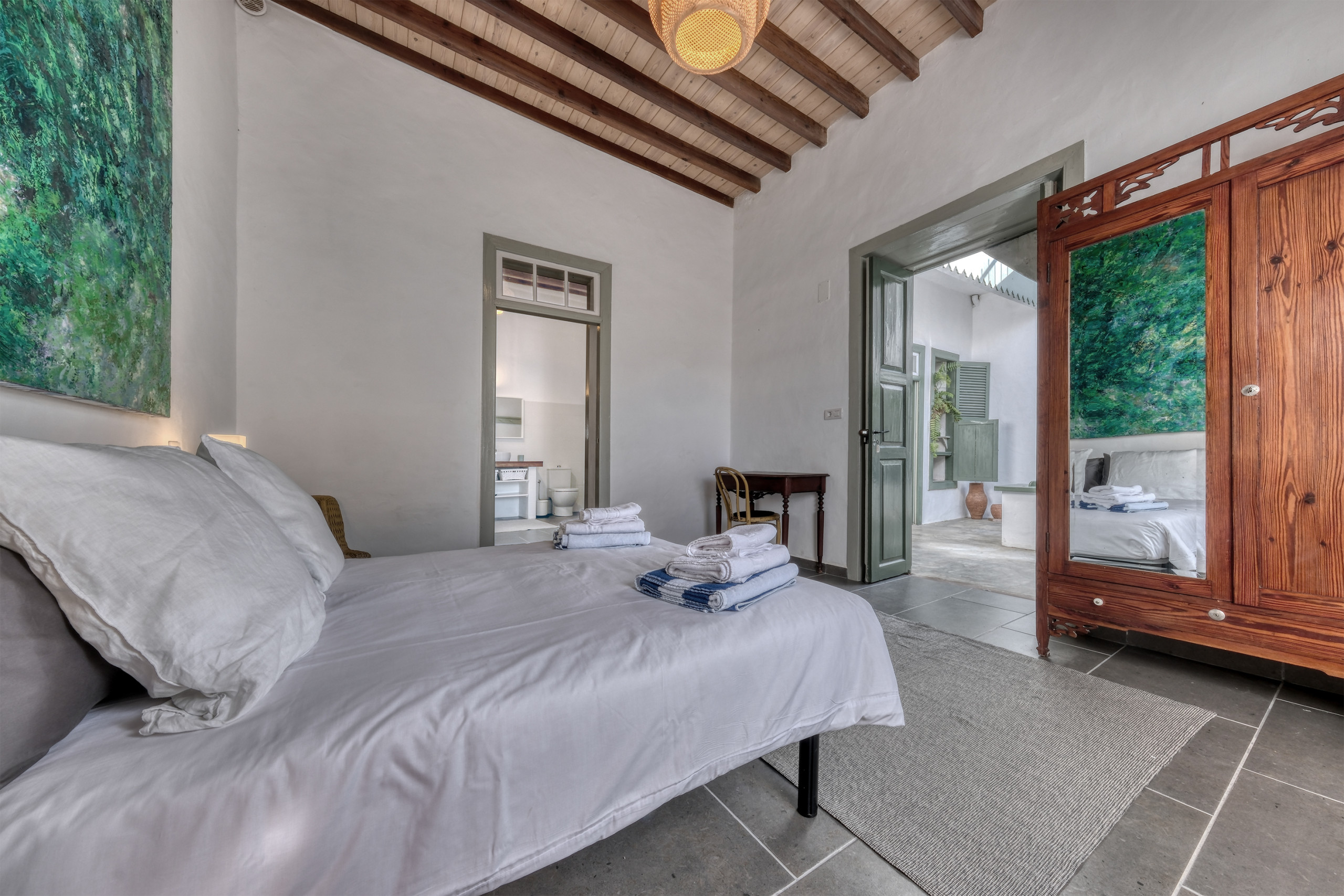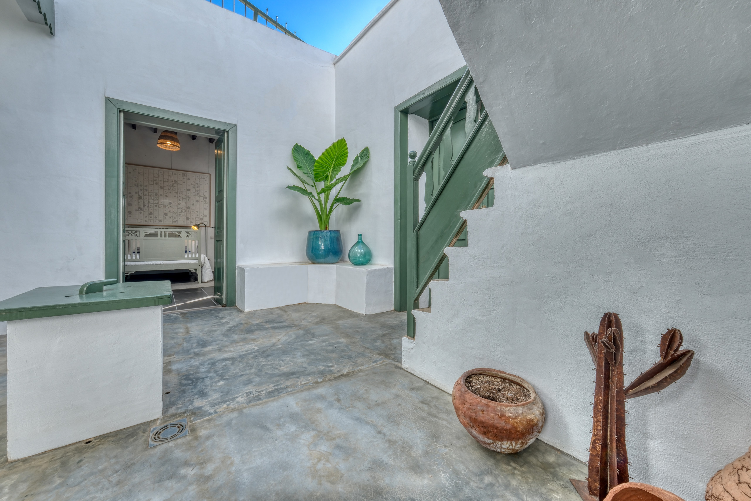 Subiendo a la segunda planta, la casa sorprende con un amplio hall recibidor que aporta amplitud y luz, junto a un baño con ducha. En esta misma planta se ubica una cuarta habitación, equipada con cama de matrimonio, armario y un bonito balcón que permite la entrada de luz natural y que conecta desde el exterior con el patio canario, ofreciendo además acceso directo a la planta baja.