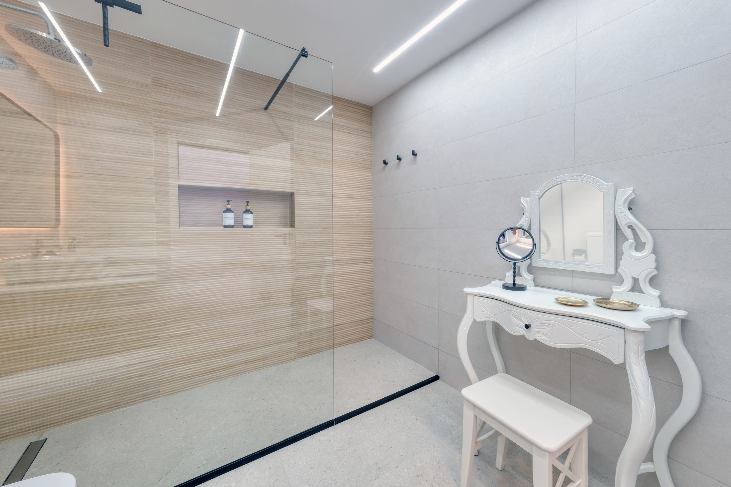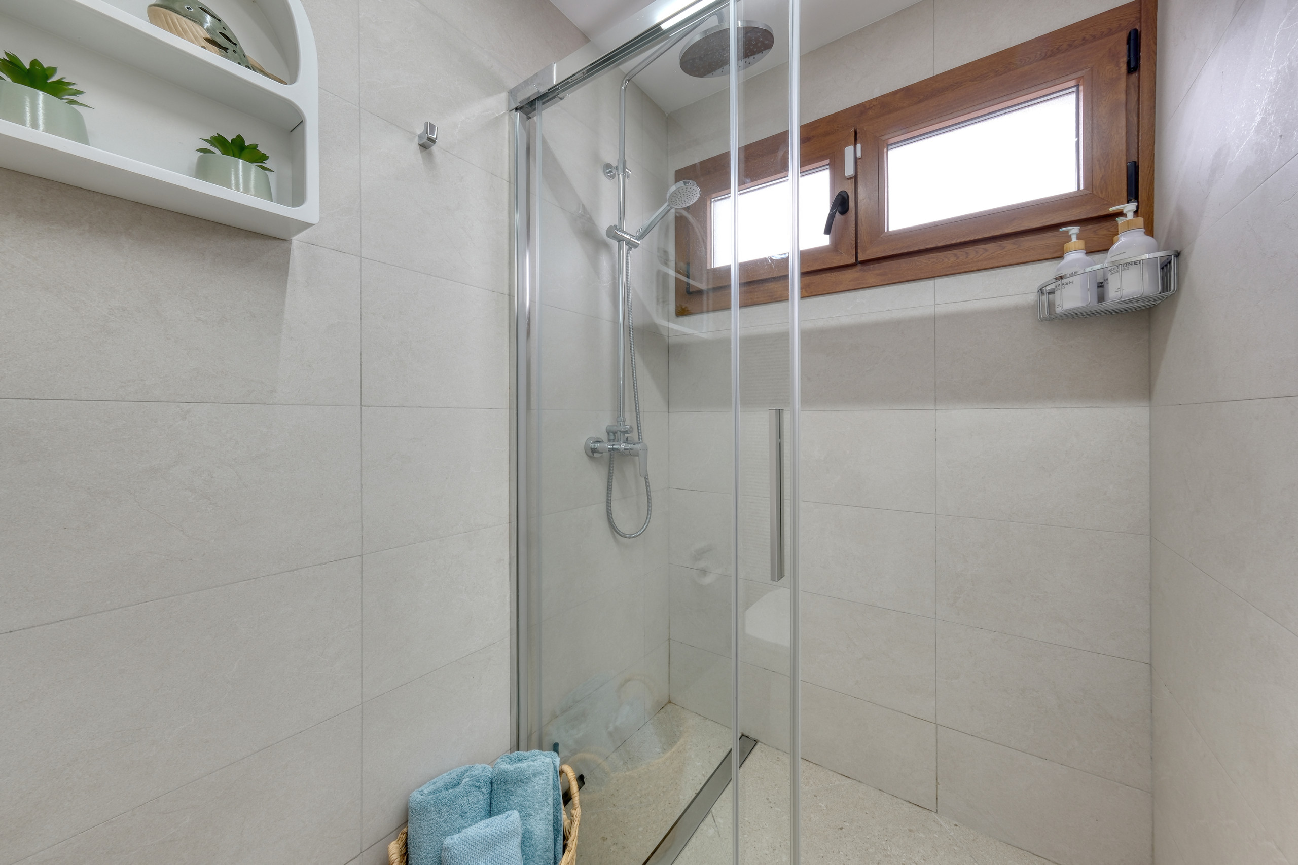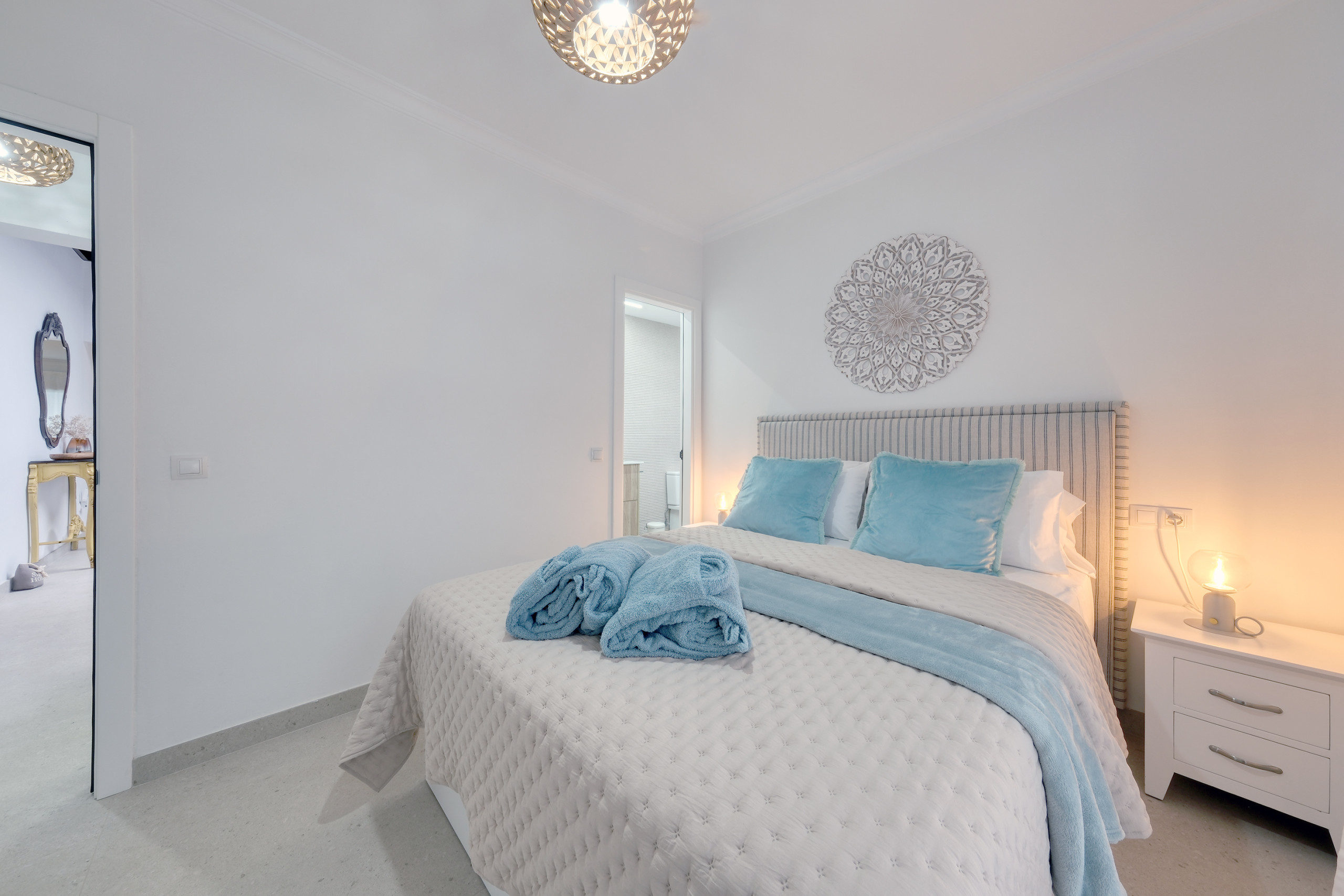 Al entrar, te recibirá un ambiente luminoso y espacioso que invita al relax. La villa cuenta con dos dormitorios dobles con baño en suite, perfectos para mantener la intimidad, y un tercer dormitorio con camas individuales, ideal para niños o amigos. Un tercer baño completo con ducha, bañera y bidé ofrece comodidad extra para todos los huéspedes. Sábanas, toallas de baño y de playa están incluidas para que solo tengas que preocuparte de disfrutar.