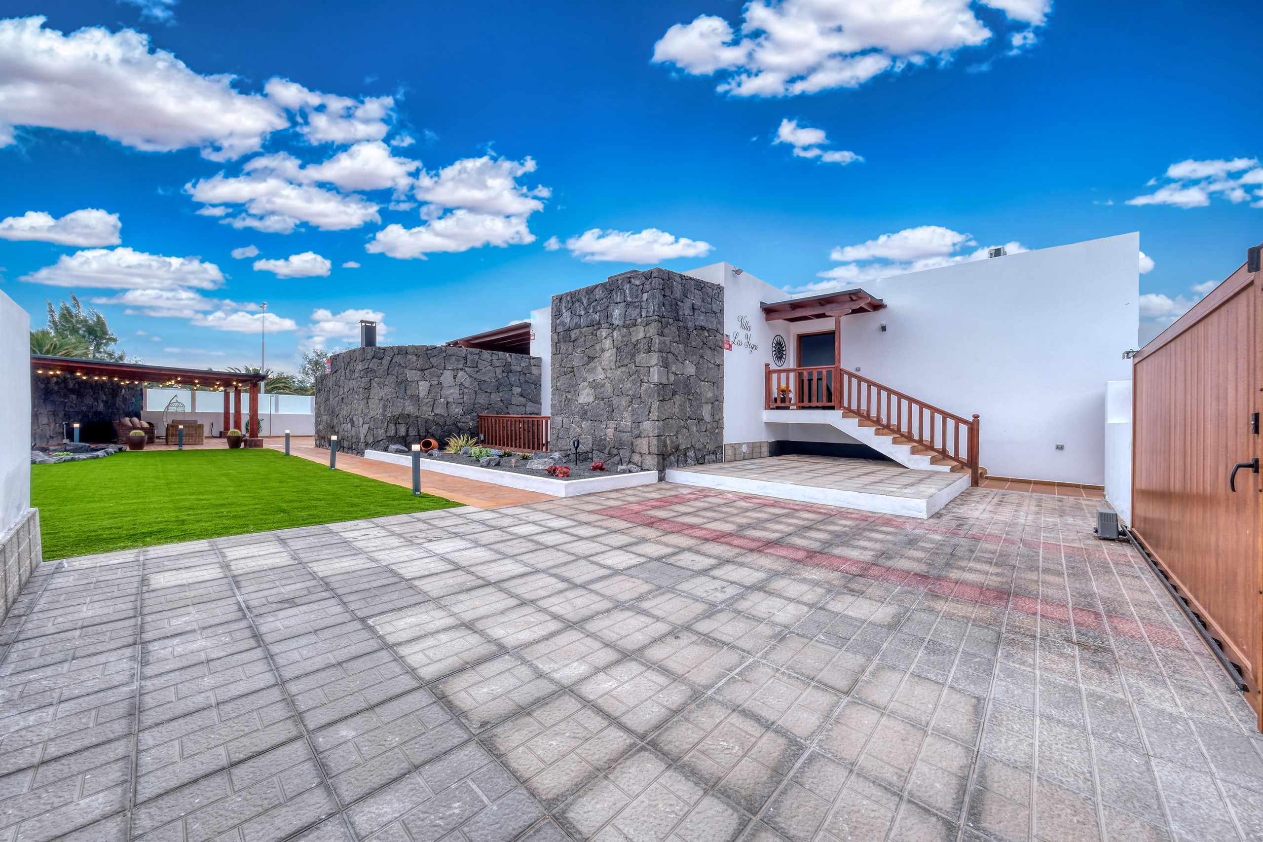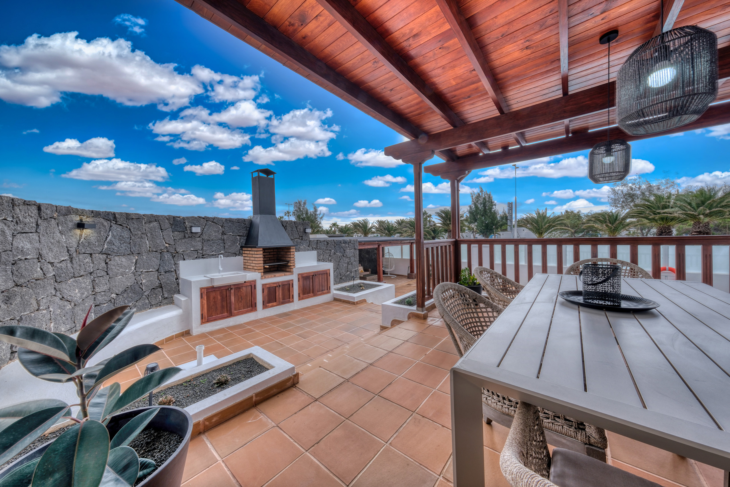 El exterior de Villa Los Yeyos es un auténtico oasis privado. Su gran piscina climatizada, la zona de barbacoa con comedor al aire libre y el espacio chill-out con cómodos sofás invitan a disfrutar del clima de Lanzarote en un ambiente exclusivo. La propiedad cuenta además con acceso peatonal directo al paseo marítimo.