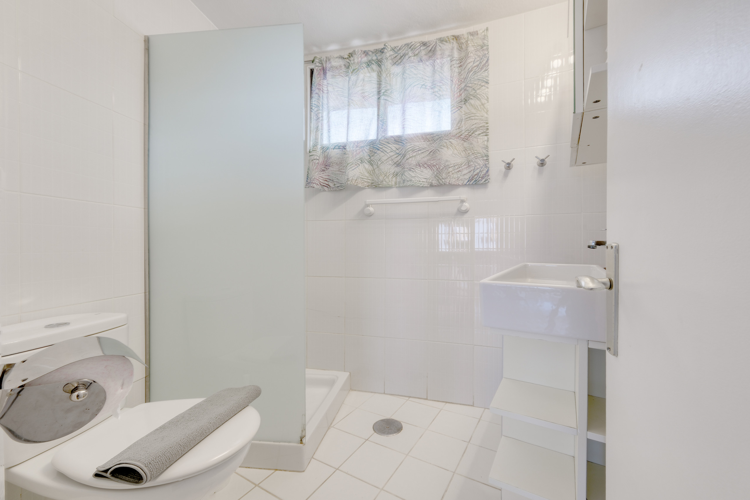 Das Badezimmer ist in zwei unabhängige Räume unterteilt, die während des Aufenthalts mehr Komfort bieten. Ein Bereich verfügt über eine Dusche und ein Waschbecken, während der andere WC, ein zweites Waschbecken und eine Waschmaschine enthält, was die gleichzeitige Nutzung erleichtert.