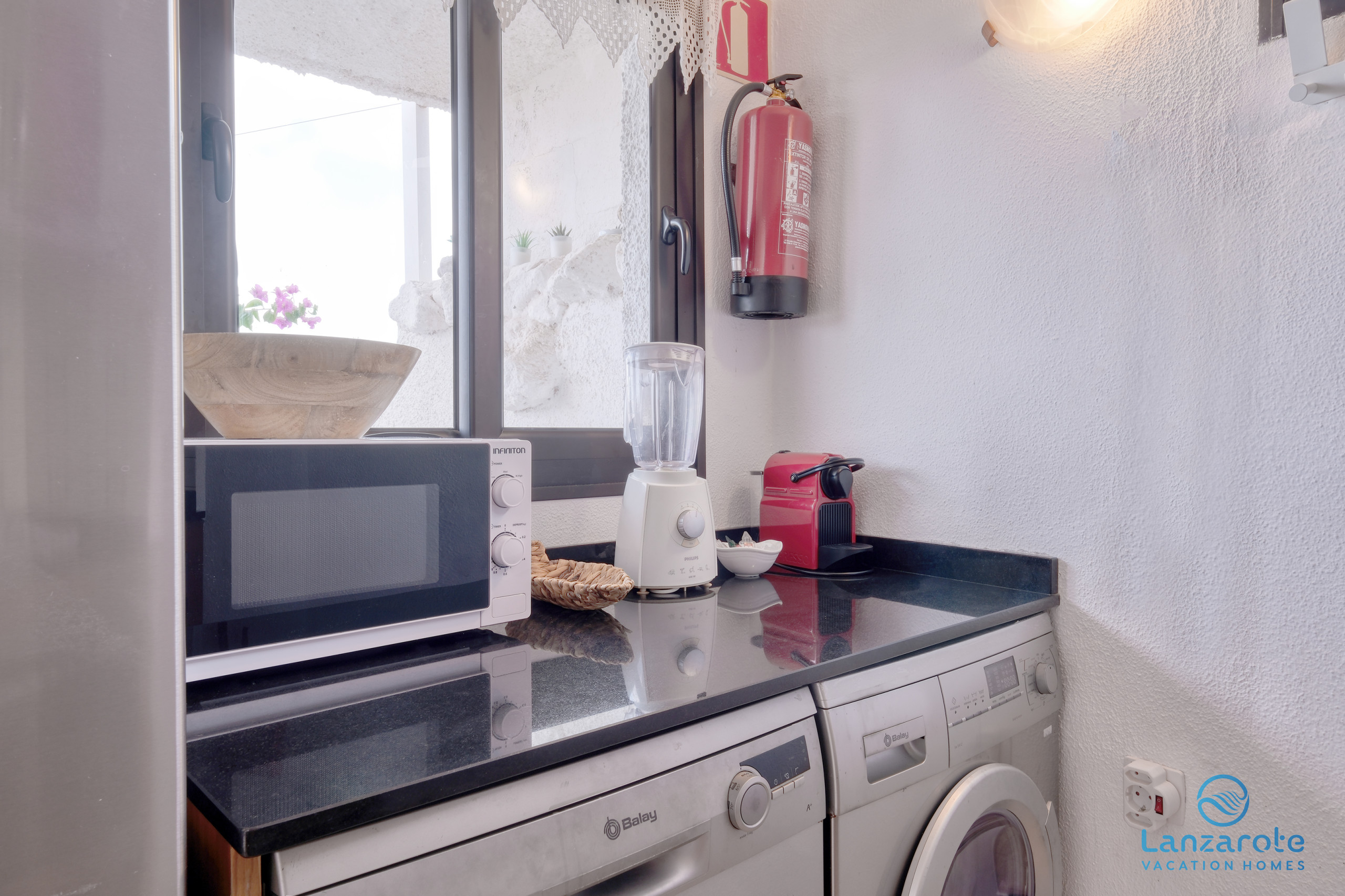 Die Küche ist vollständig ausgestattet mit allem Notwendigen für einen komfortablen Aufenthalt, einschließlich Haushaltsgeräten, Backofen, Mikrowelle, Kühlschrank, Kaffeemaschine, Toaster, Wasserkocher, Kochutensilien und allem, was erforderlich ist, um die Unterkunft vollkommen selbstständig zu genießen.