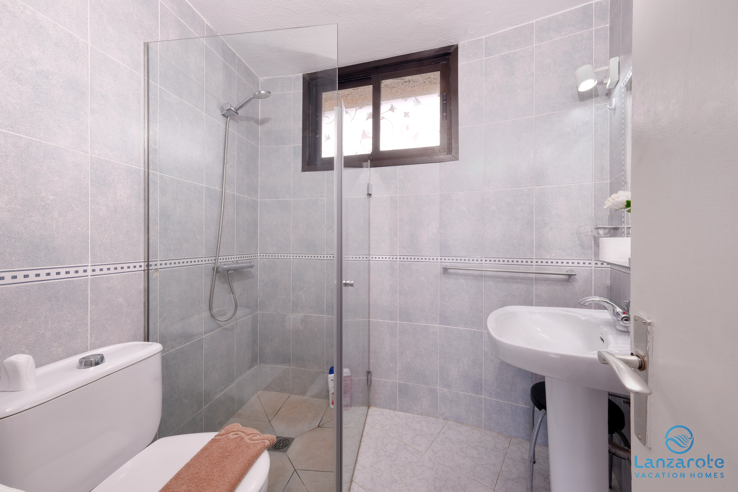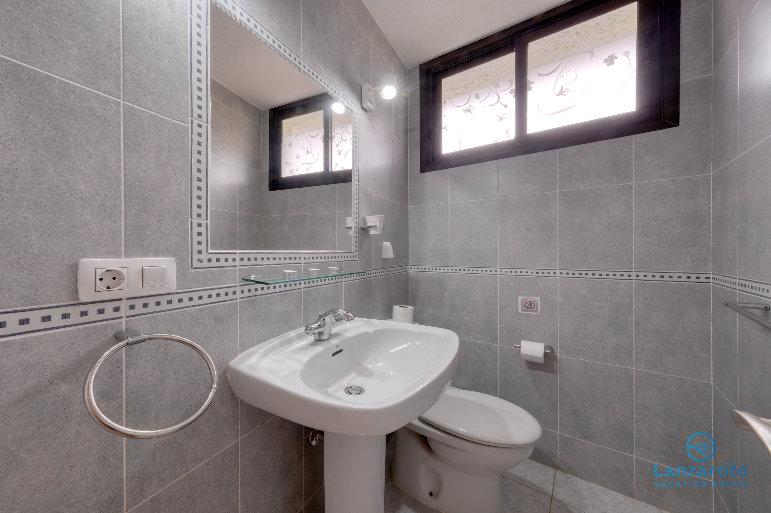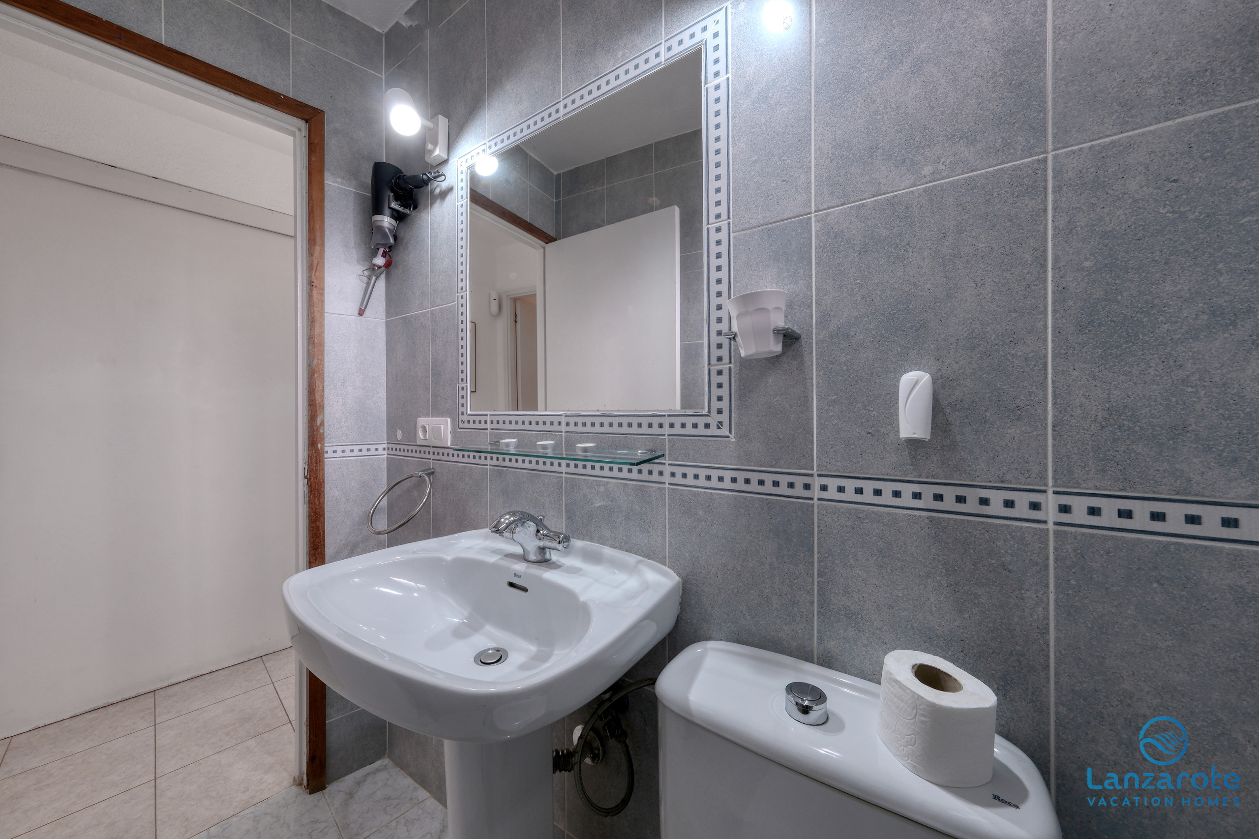 Das Badezimmer ist in zwei unabhängige Bereiche unterteilt, was mehr Komfort während des Aufenthalts bietet. Ein Bereich verfügt über eine Dusche, Waschbecken und WC, während der zweite zusätzliche WC und Waschbecken umfasst, was eine gleichzeitige Nutzung ermöglicht und mehr Funktionalität für Familien oder Gruppen bietet.