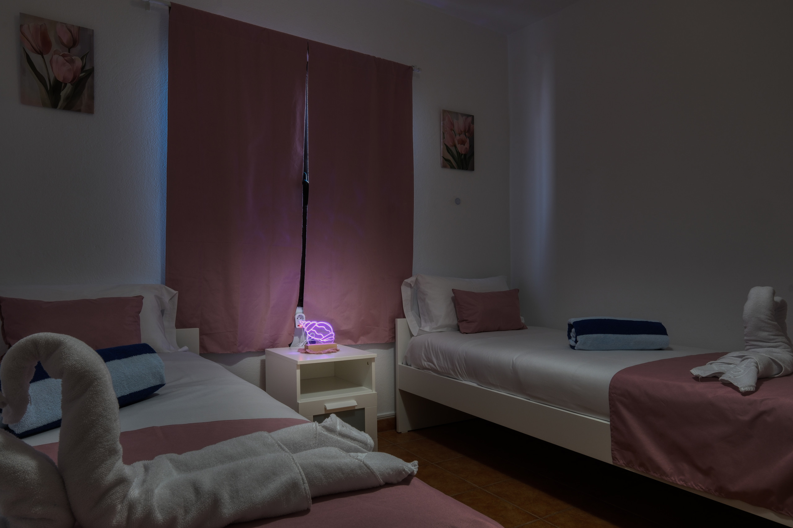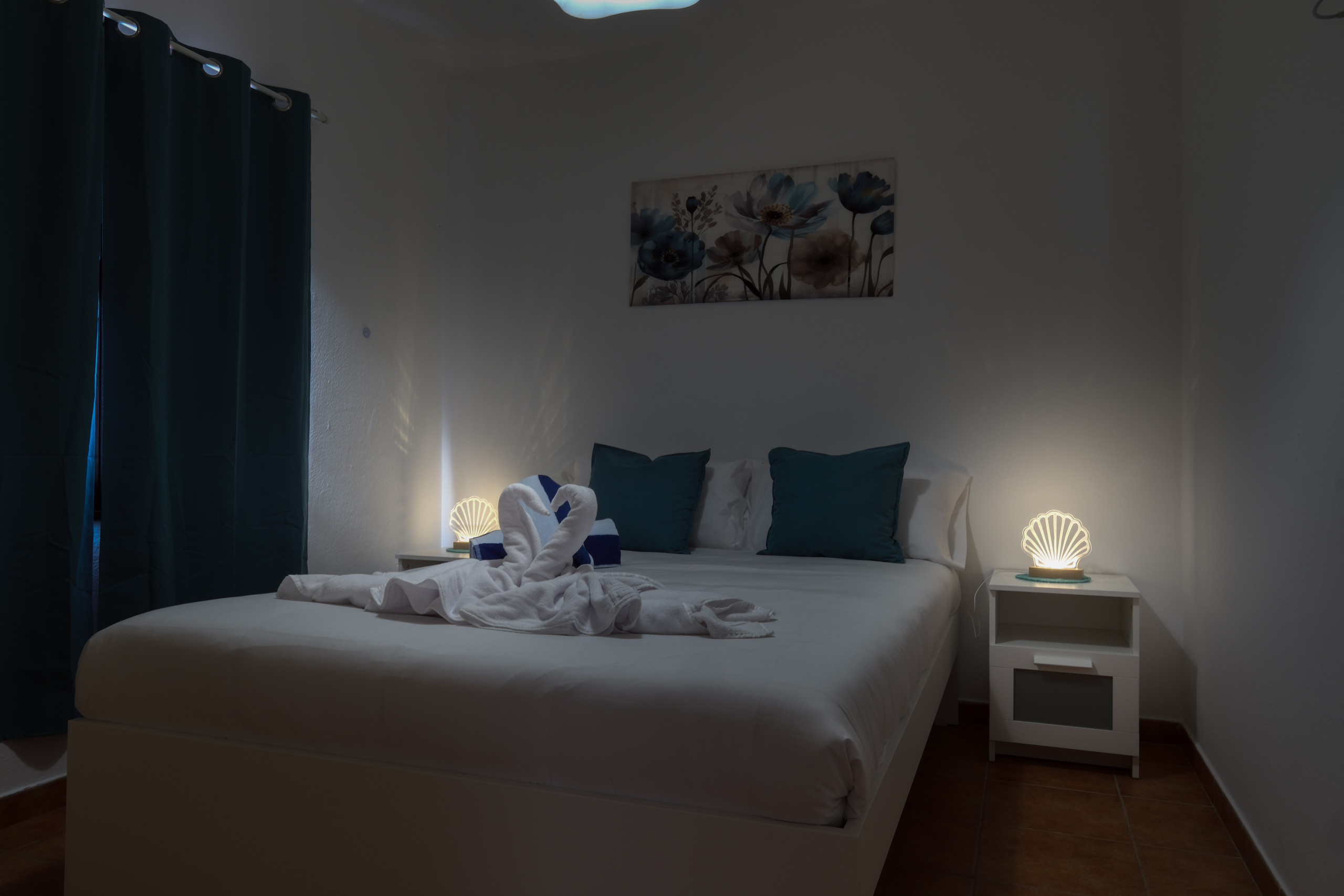 Casita Luisa bietet drei Schlafzimmer, die zum Ausruhen konzipiert sind. Zwei davon verfügen über ein Doppelbett und einen Fernseher, eines davon mit einem eingebauten Schrank, der viel Stauraum bietet. Das dritte Schlafzimmer hat zwei Einzelbetten, ideal für Kinder, Freunde oder Verwandte.