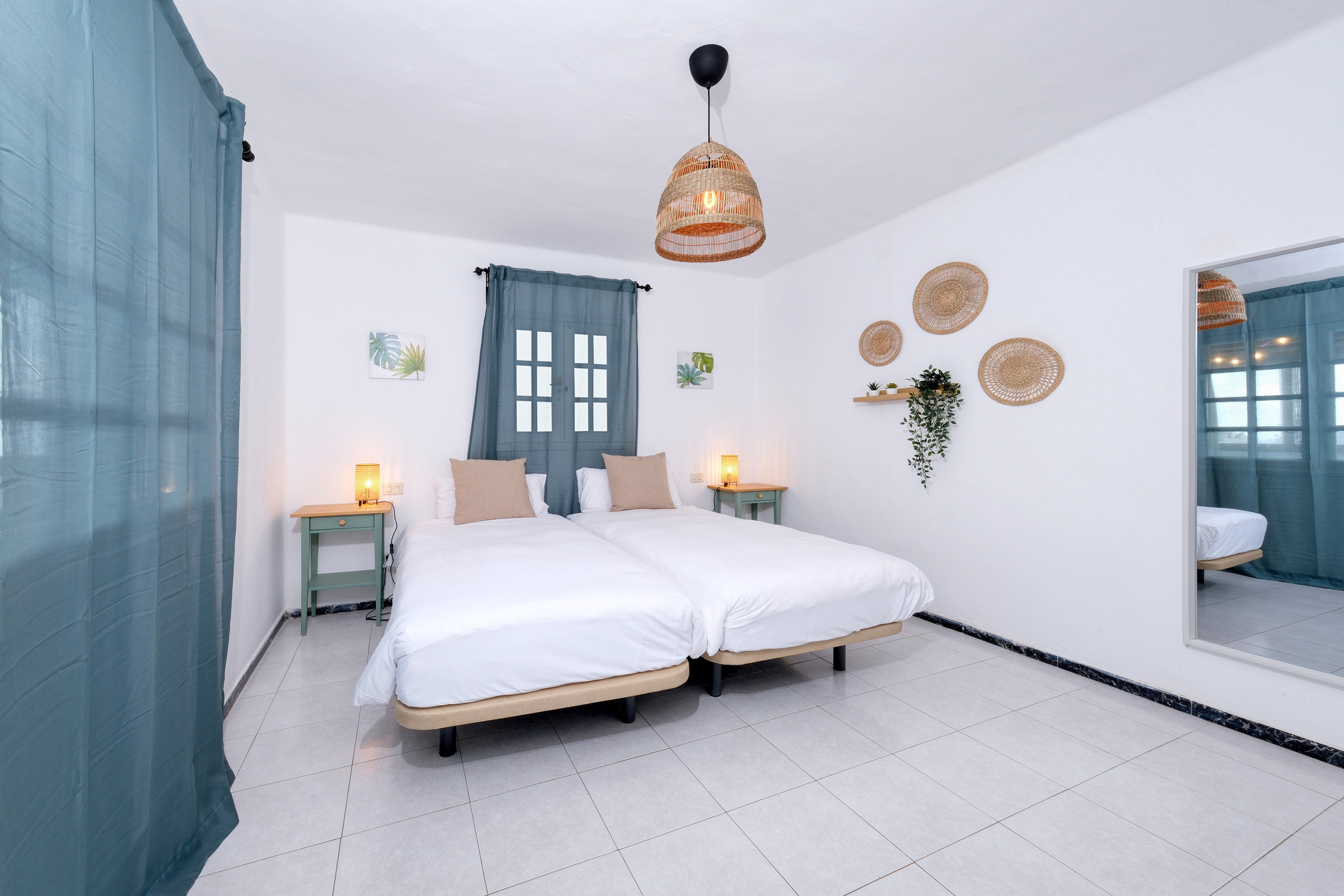 Das dritte Schlafzimmer ist mit zwei Einzelbetten möbliert und verfügt über einen Ventilator, um die Räume kühl zu halten. Alle Schlafzimmer sind hell und gemütlich eingerichtet.