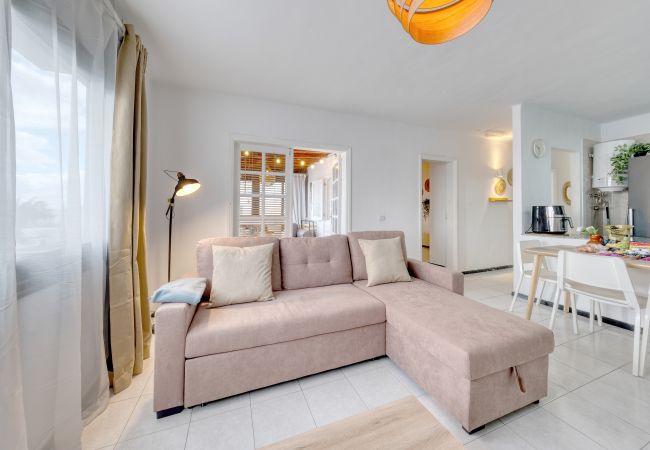 Kokette Ferienwohnung 300 m vom Strand entfernt. Komplett ausgestattet, komfortabel und in der Nähe von Dienstleistungen. Verfügt über einen privaten Pool, 3 Schlafzimmer und WLAN mit Glasfaser und Satellitekanälen. Ideal für Familien und kleine Gruppen.