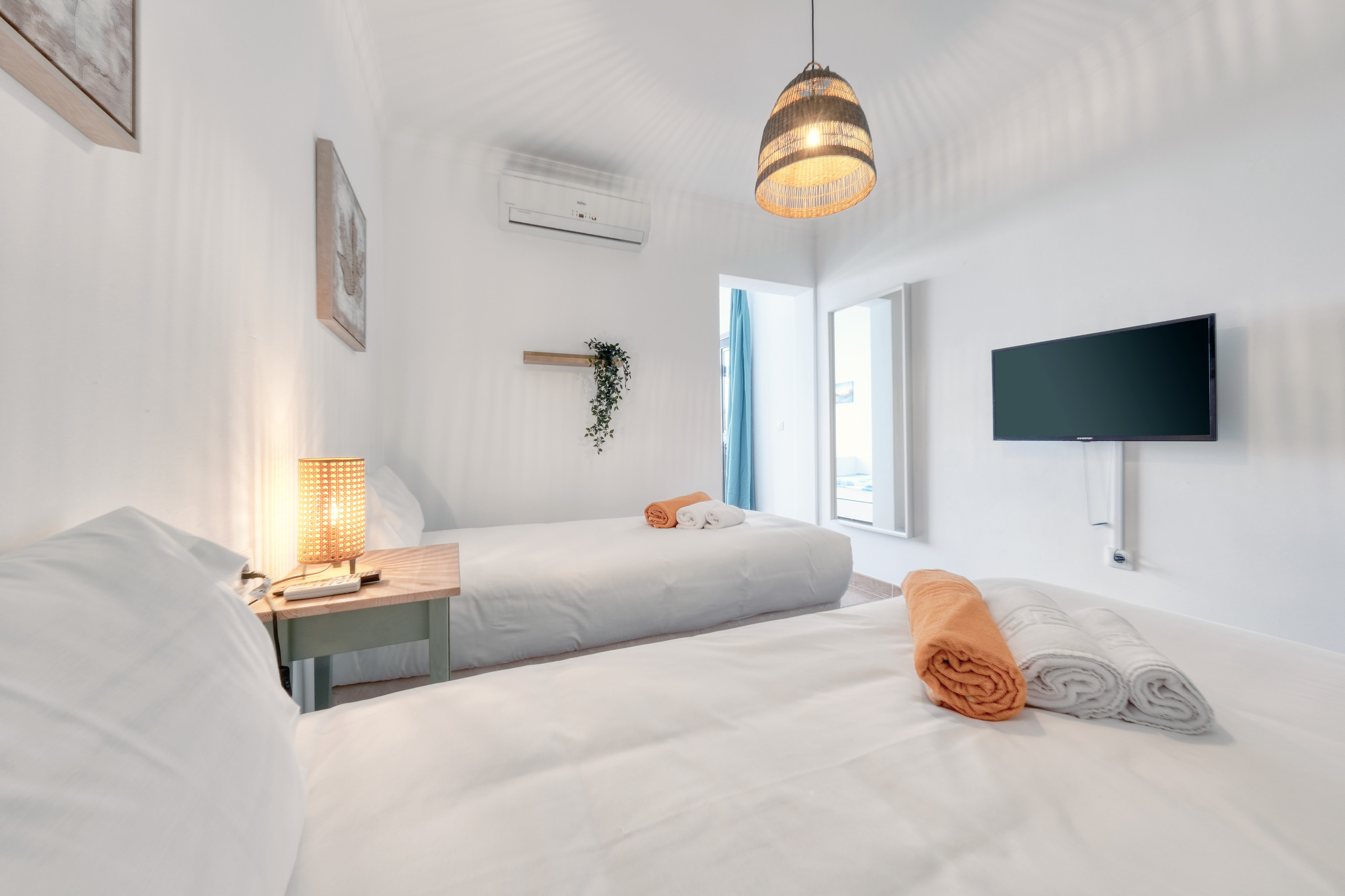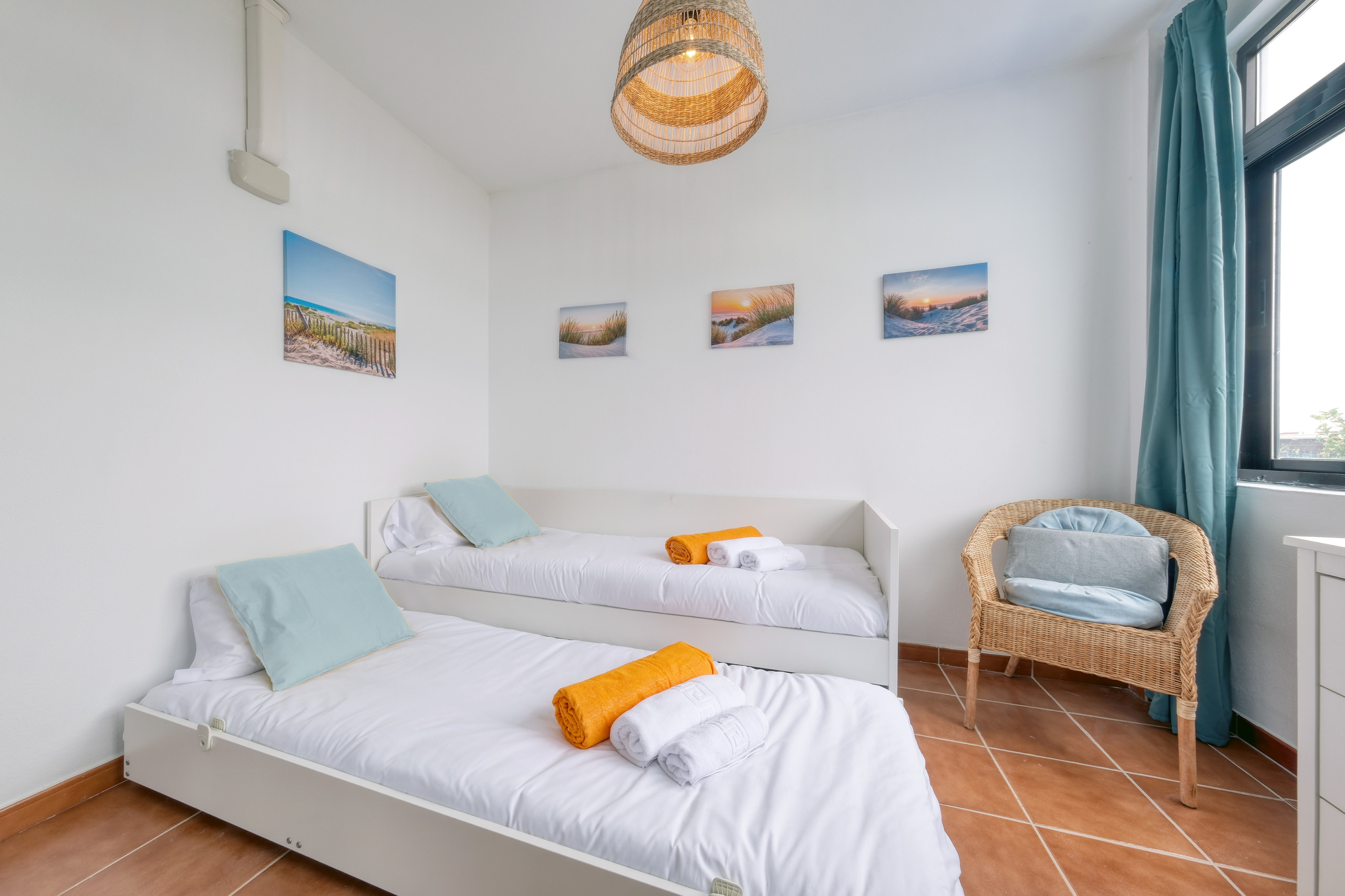 Das erste Schlafzimmer verfügt über ein Badezimmer en suite mit Dusche, ein Schlafsofa vom Typ Klick-Klack, Klimaanlage, ein Doppelbett und einen geräumigen Kleiderschrank. Das zweite Schlafzimmer bietet zwei Betten von 90 cm, einen Schreibtisch, ein Fenster nach draußen, Klimaanlage und einen geräumigen Kleiderschrank. Das dritte Schlafzimmer verfügt ebenfalls über zwei getrennte Betten, einen Schreibtisch, Kleiderschrank und Klimaanlage.