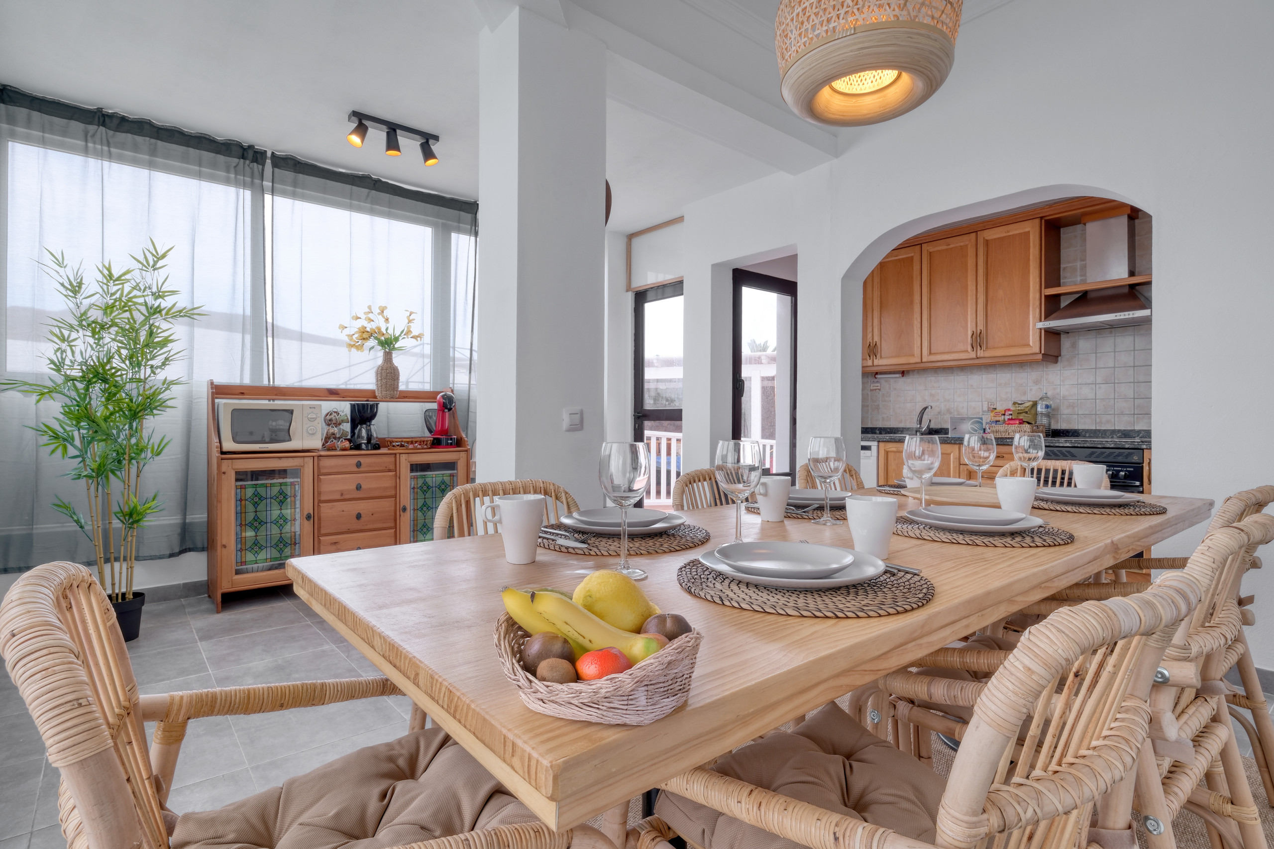 Die Villa verfügt über eine komplett ausgestattete Küche mit Glaskeramikkochfeld, Kühlschrank, Gefrierschrank, Backofen, Mikrowelle, Geschirrspüler, Kaffeemaschine, Toaster und allem notwendigen Geschirr, um während des Aufenthalts bequem zu kochen. Der Wohn-Essbereich ist geräumig, hell und gemütlich, mit direktem Zugang zum Außenbereich, was einen perfekten Raum zum gemeinsamen Erleben schafft. Darüber hinaus verfügt die Unterkunft über High-Speed-WLAN und Smart-TV mit internationalen Sendern.