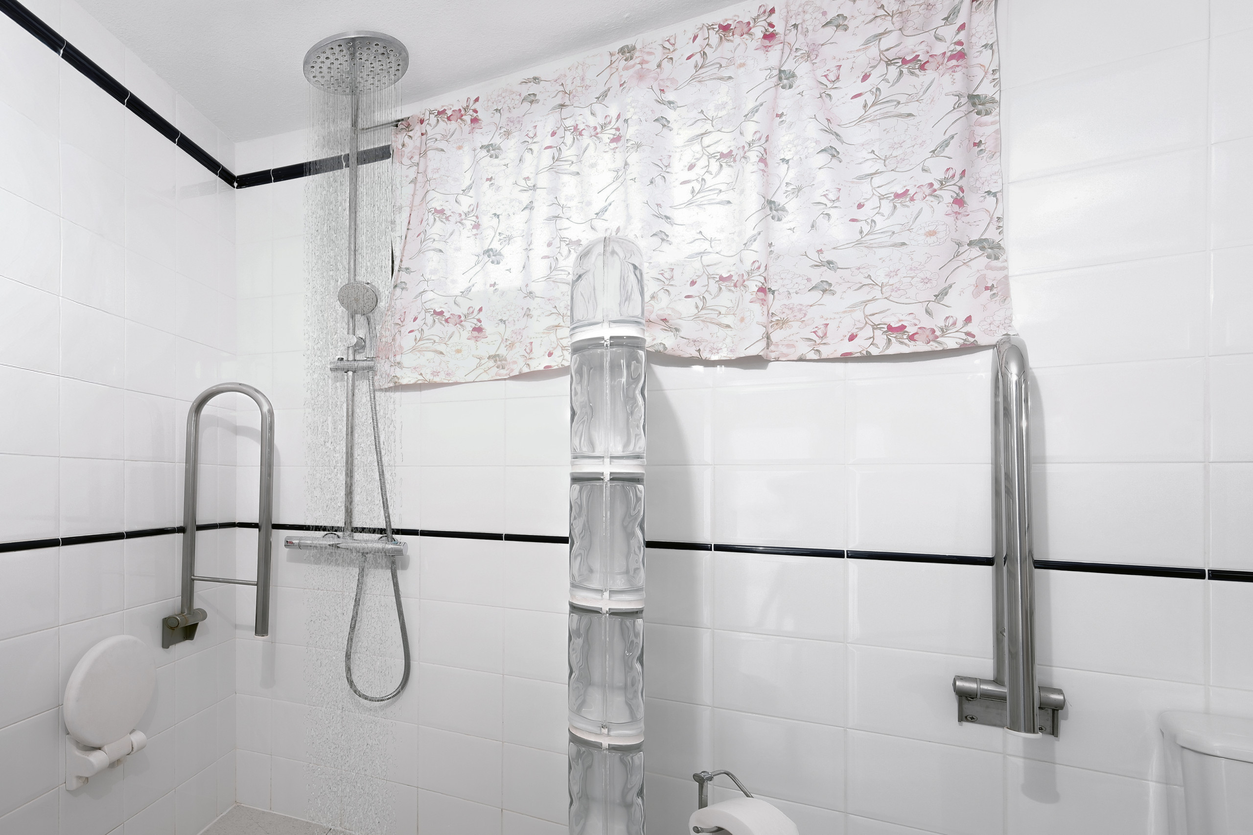 Wide clearance to shower, toilet