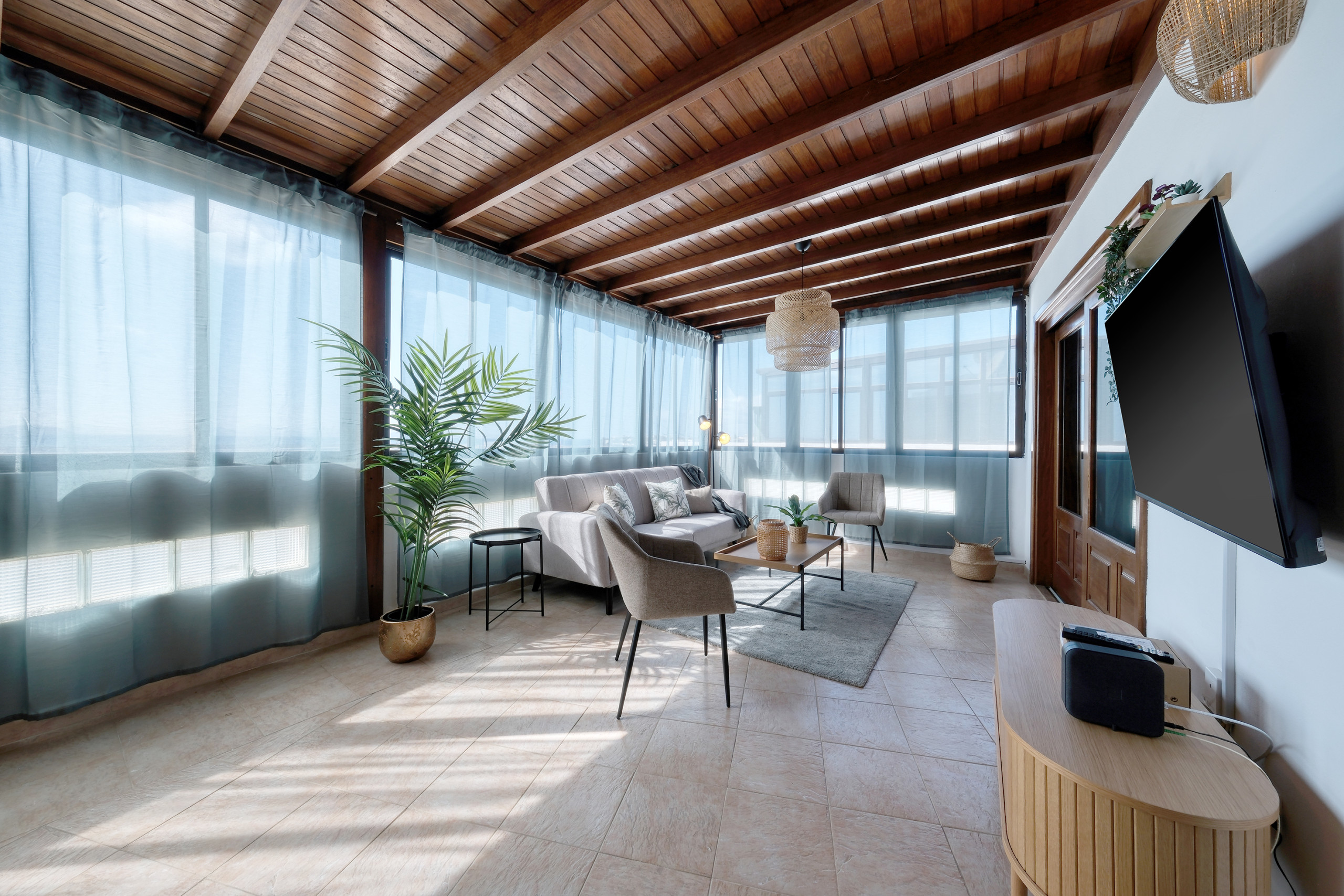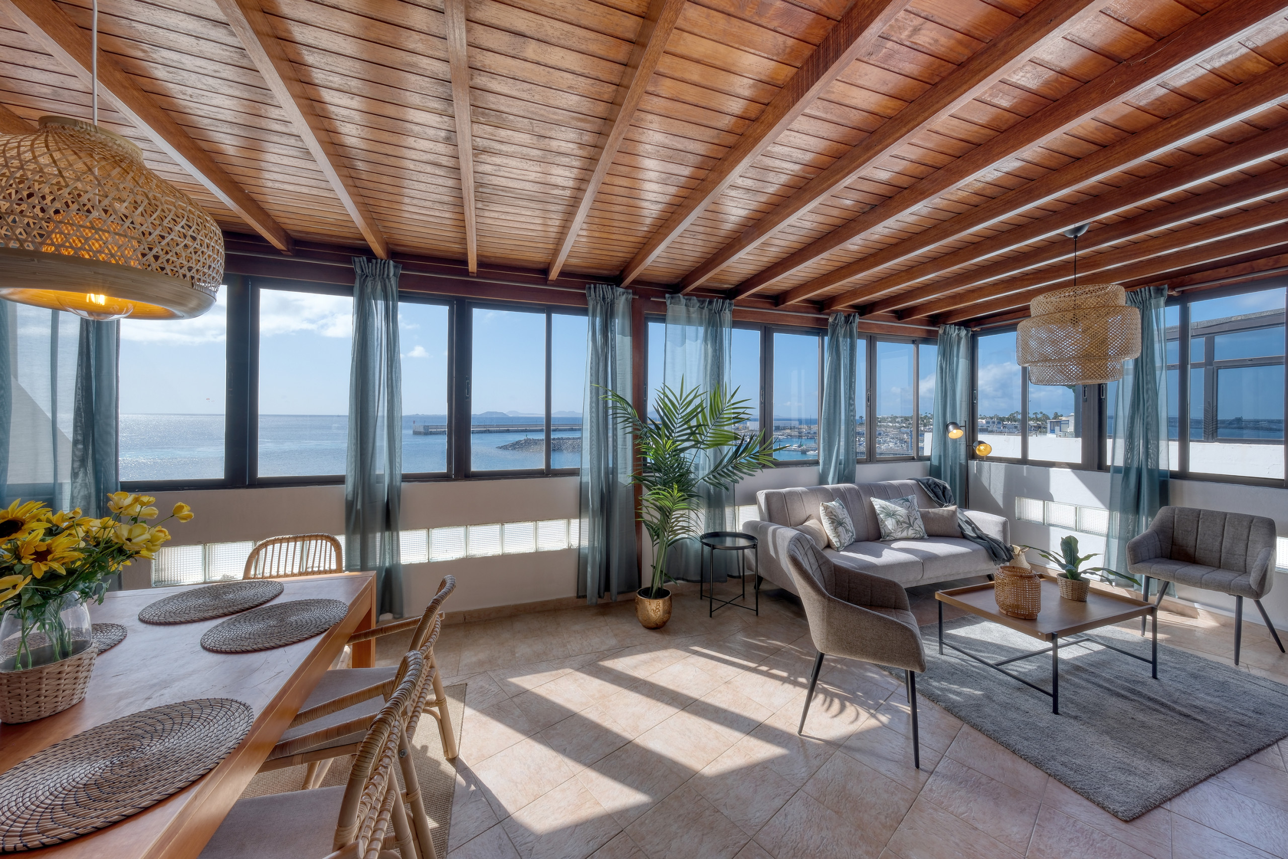 Lanzarote Vacation Homes (LVH) presents Casa Bonica, an elegant property located in the heart of Playa Blanca, next to the marina, with spectacular direct views of the Atlantic Ocean and the island of Fuerteventura. Its location is unbeatable, surrounded by restaurants, shops and all kinds of services, which allows enjoying everything Playa Blanca offers just a few steps away. The town beach is just a few minutes walking and the well-known Playa Dorada is approximately 10 minutes on foot. Casa Bonica is the ideal place for those seeking comfort, a central location and unforgettable sea views.