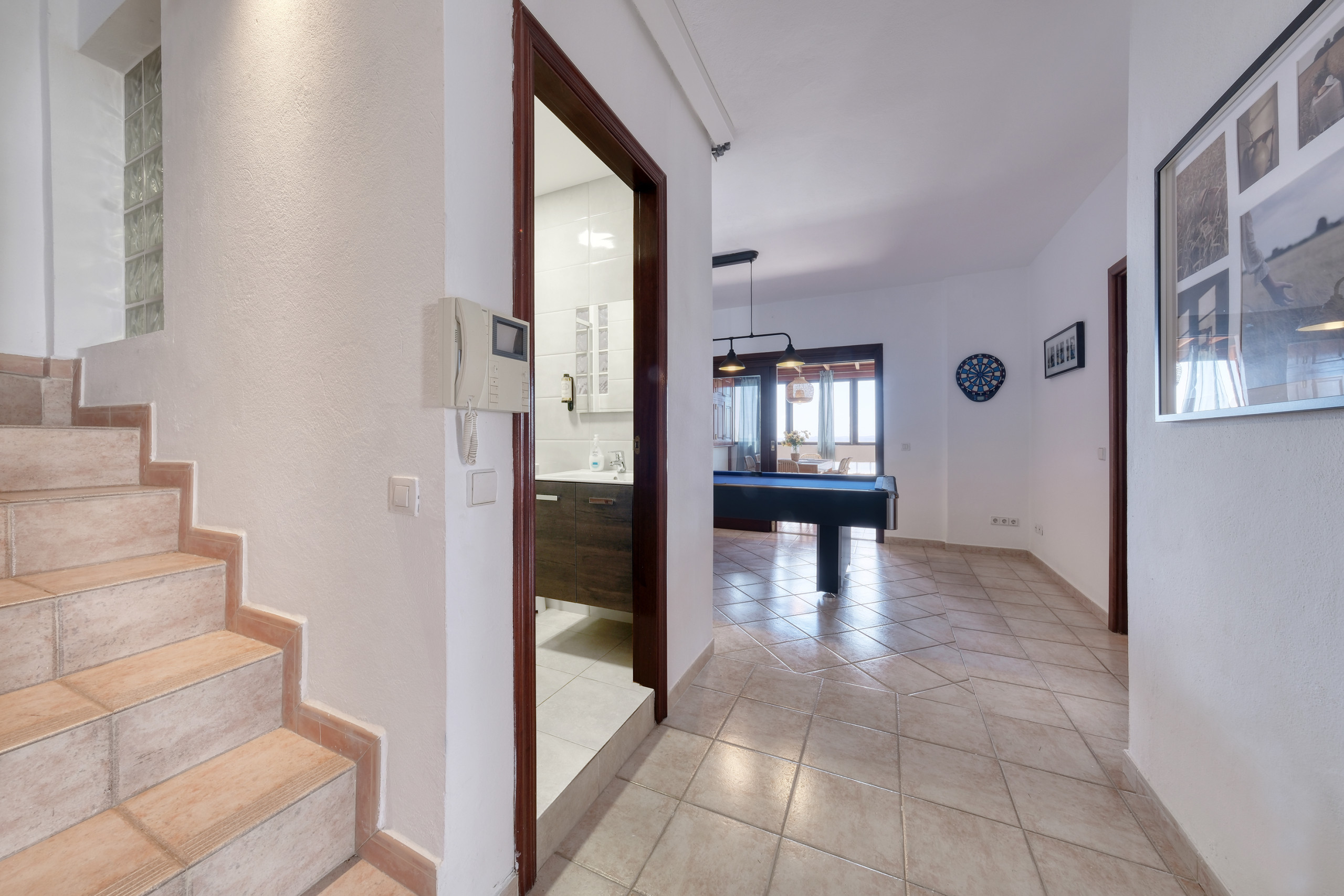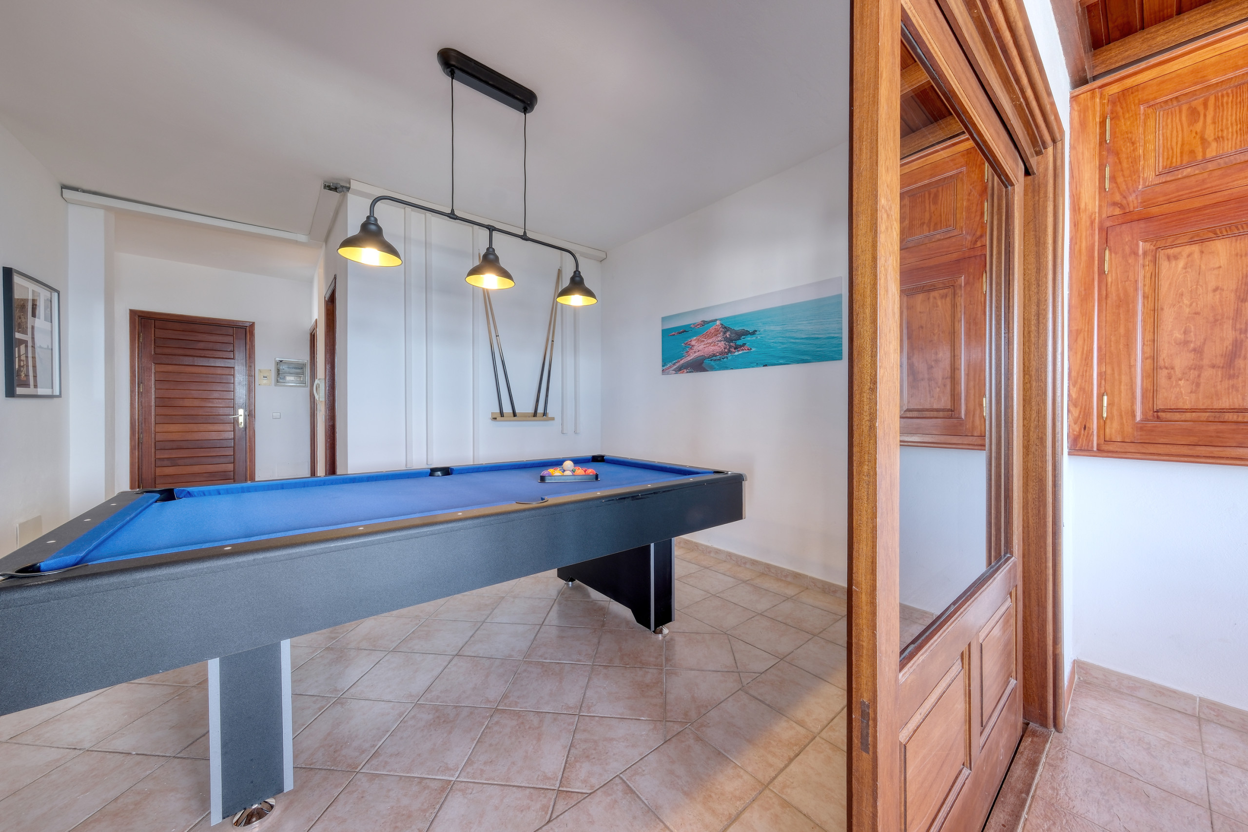 The accommodation features an independent kitchen fully equipped with a ceramic hob, fridge, freezer, dishwasher, oven, toaster, coffee maker and all the necessary crockery and utensils to cook with total comfort during the stay. The living-dining room is spacious and bright and offers stunning views of the ocean, creating a perfect environment to relax and enjoy the surroundings. Additionally, the house has a leisure area with a billiards table, ideal for sharing fun moments with family or friends. For greater convenience, the accommodation offers high-speed wifi, Smart TV in the living room with international channels and Smart TVs in the three bedrooms.