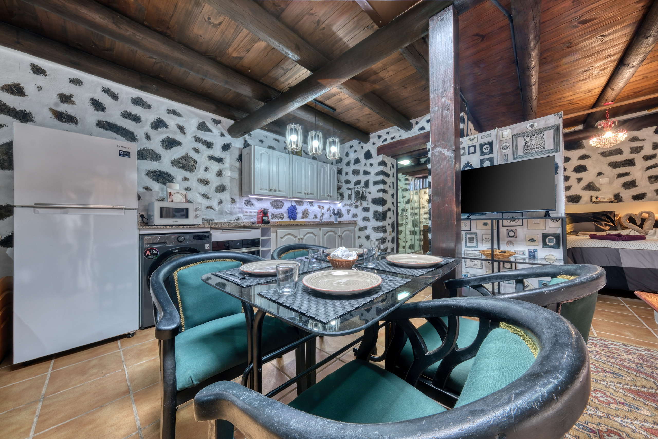 Apartment 2 (Ground Floor) is a spacious studio with capacity for up to 6 people. It has two double beds and an individual pull-out bed, as well as a fully equipped American kitchen with oven, microwave, coffee maker, kitchen utensils and a dining table where you can enjoy family breakfasts or special dinners.