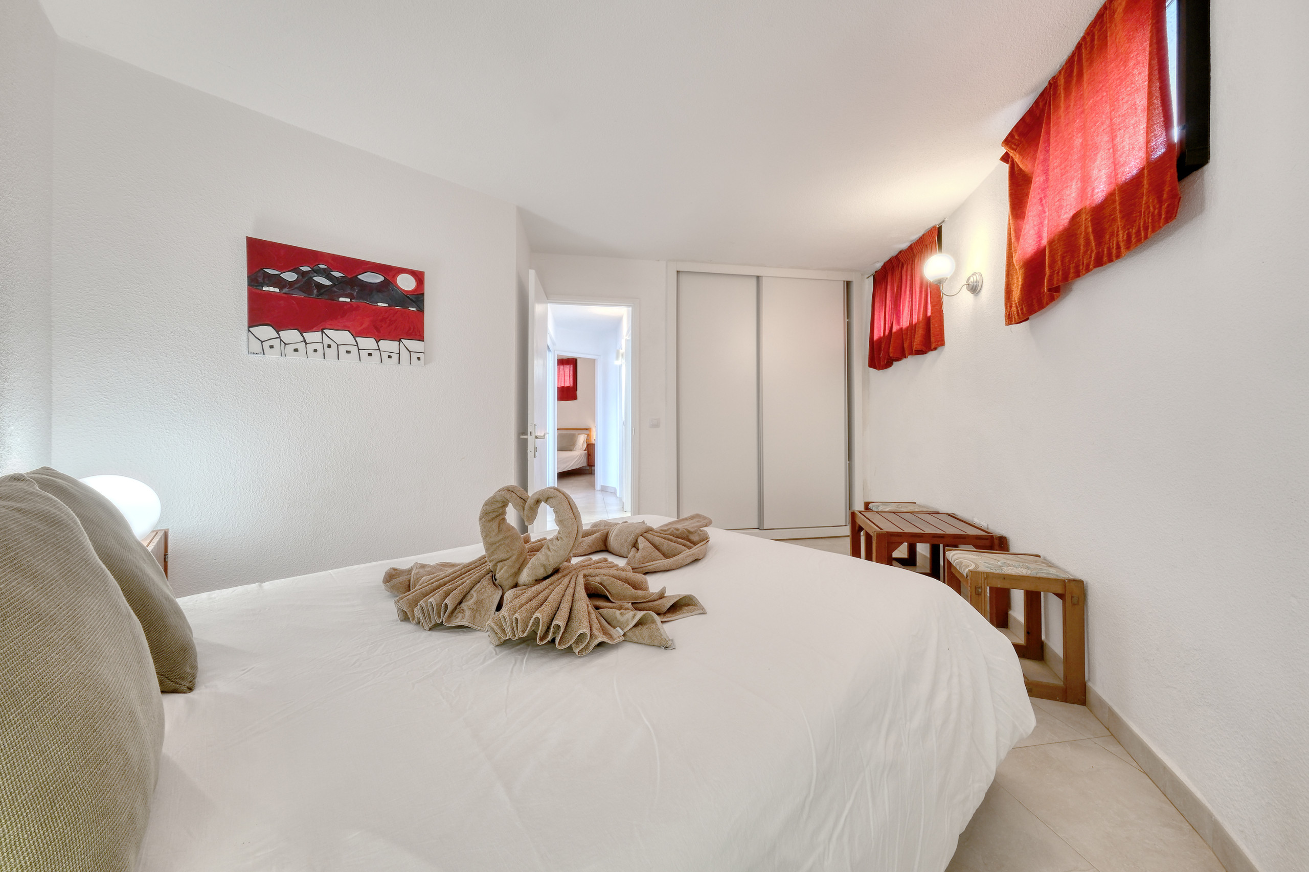 The bungalow has two carefully decorated rooms, designed to ensure rest and tranquillity, one with a double bed and another with two single beds. Both offer bright and functional spaces, with wardrobes and a current style that combines comfort and simplicity.
