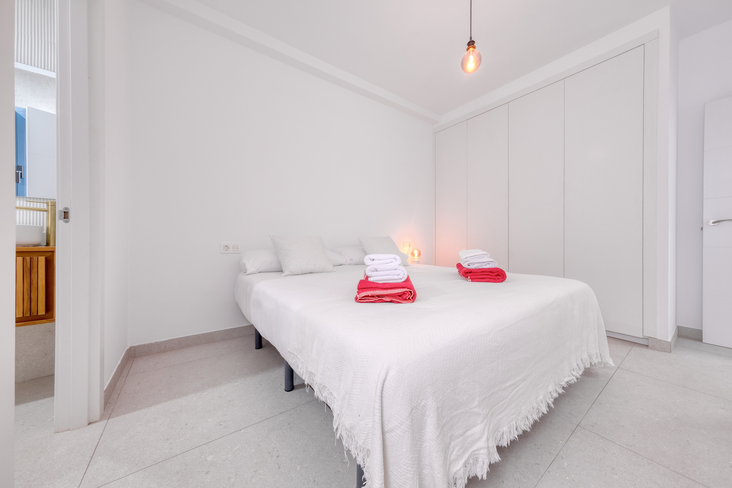 The dwelling has two carefully decorated bedrooms, designed to guarantee rest and tranquillity. One bedroom has a double bed and en-suite bathroom, another has two beds. All offer bright and functional spaces with wardrobes and contemporary decoration that combines comfort and simplicity.