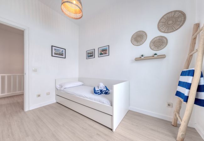 The duplex is designed so that you feel at home from the very first moment. On the ground floor, you will find the day area, a cosy and functional space where you can relax after exploring the island. The fully equipped American kitchen has everything you need to prepare your favourite meals: fridge, oven, microwave, ceramic hob and complete kitchenware. You will also find a toaster, juicer and Dolce Gusto coffee machine, perfect for starting each morning with good coffee and energy.