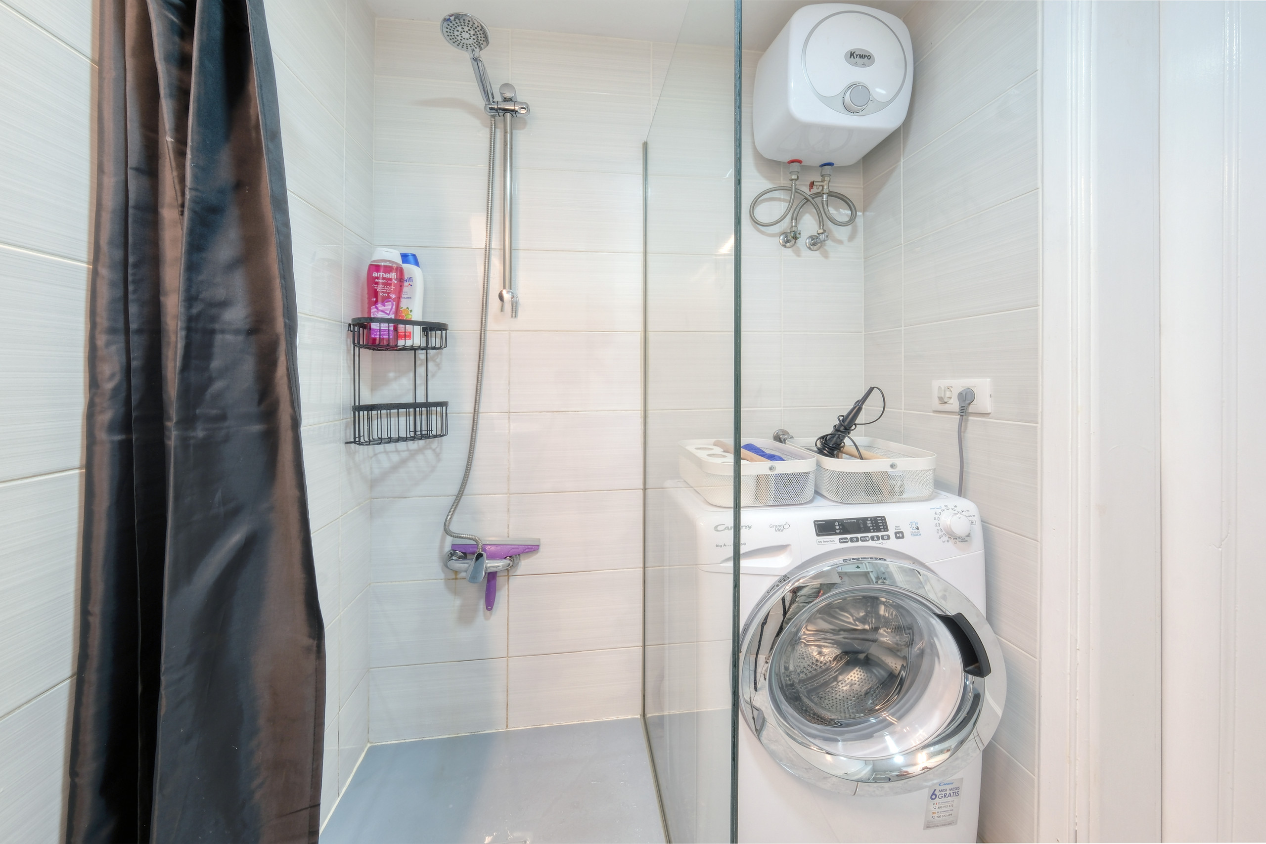 Bathroom with shower and washing machine