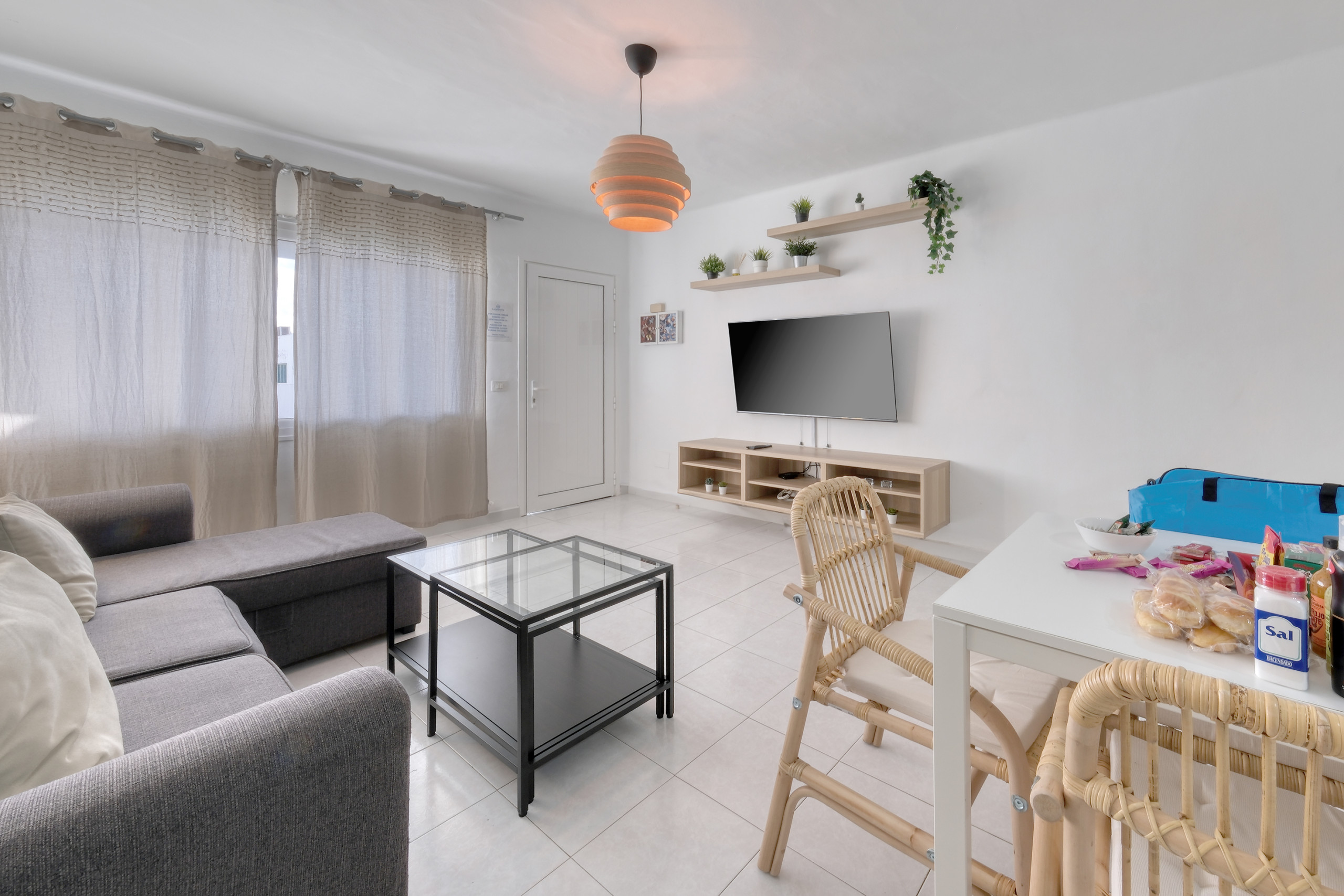 Il salone è uno spazio ampio e luminoso, progettato per il riposo e l'intrattenimento. Un comodo divano e una televisione a schermo piatto rendono questa zona il luogo perfetto per godersi un film o condividere momenti in compagnia. Inoltre, il salone ha un accesso diretto a una terrazza o balcone, dove si può godere dell'aria aperta e del piacevole clima di Lanzarote.