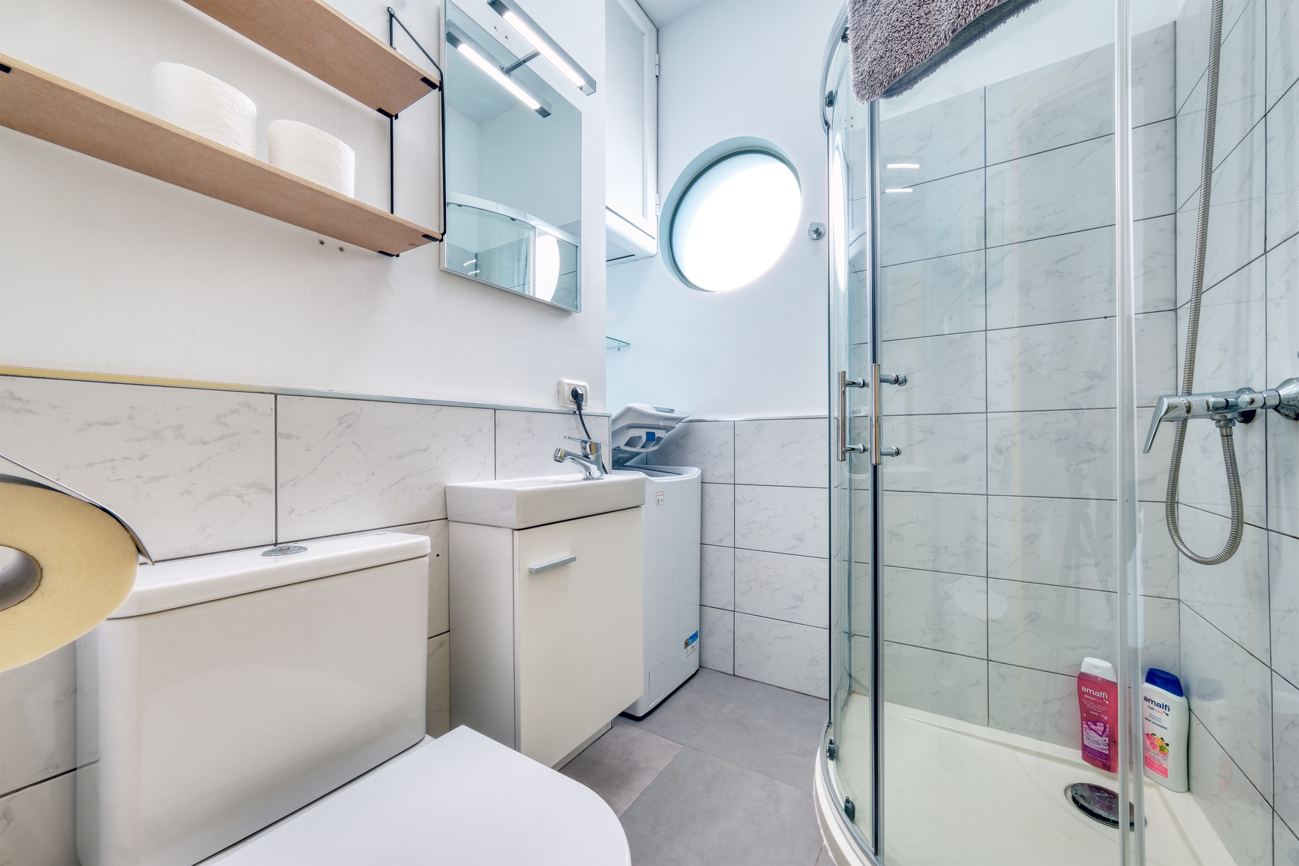 Inoltre, dispone di due bagni completi con doccia, moderni e funzionali, che garantiscono il comfort di tutti gli ospiti.