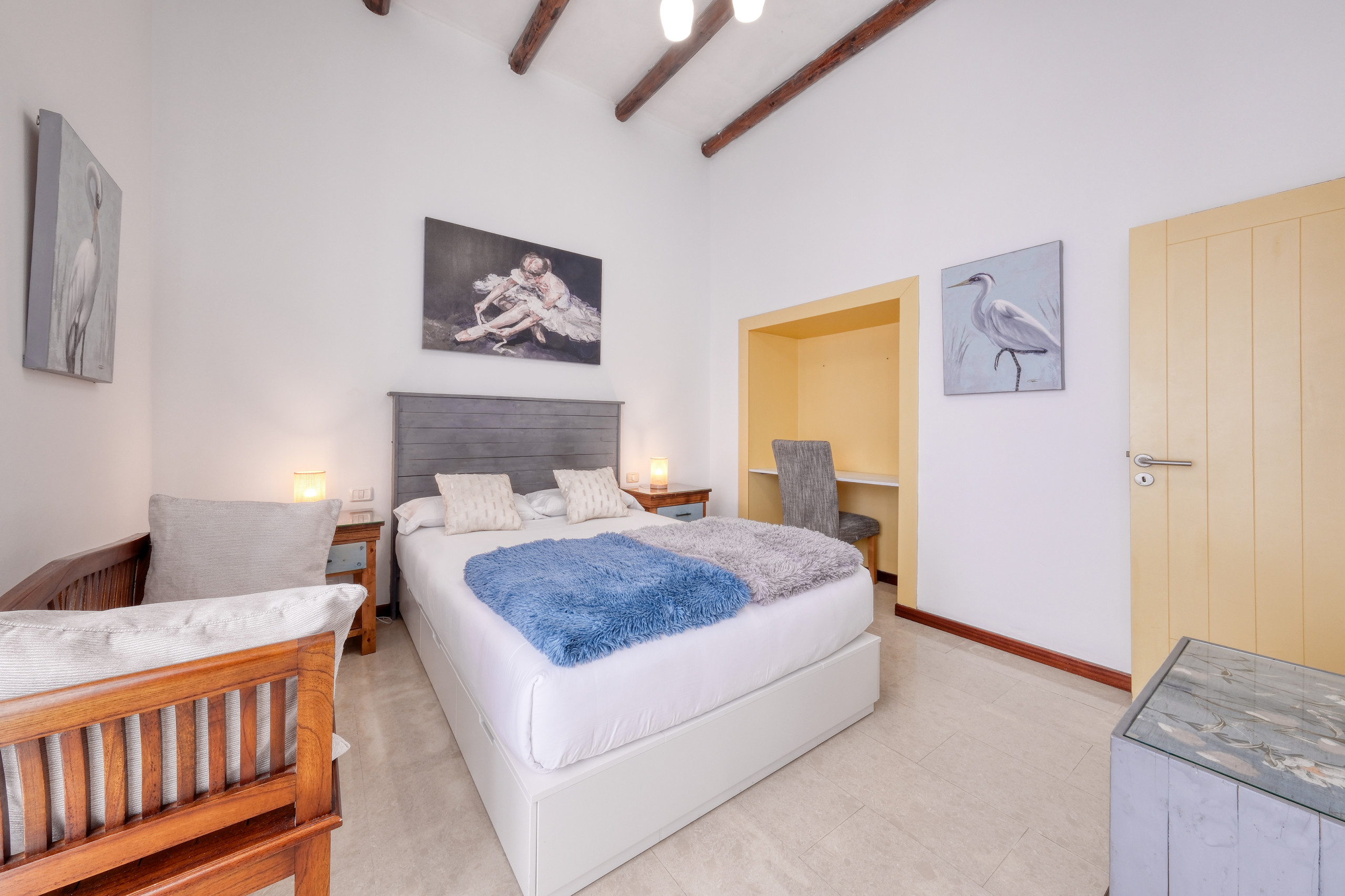 L'alloggio dispone di tre camere accuratamente distribuite: una camera con letto matrimoniale; una camera con due letti singoli; e una camera con un letto singolo, ideale per bambini o per chi viaggia da solo.