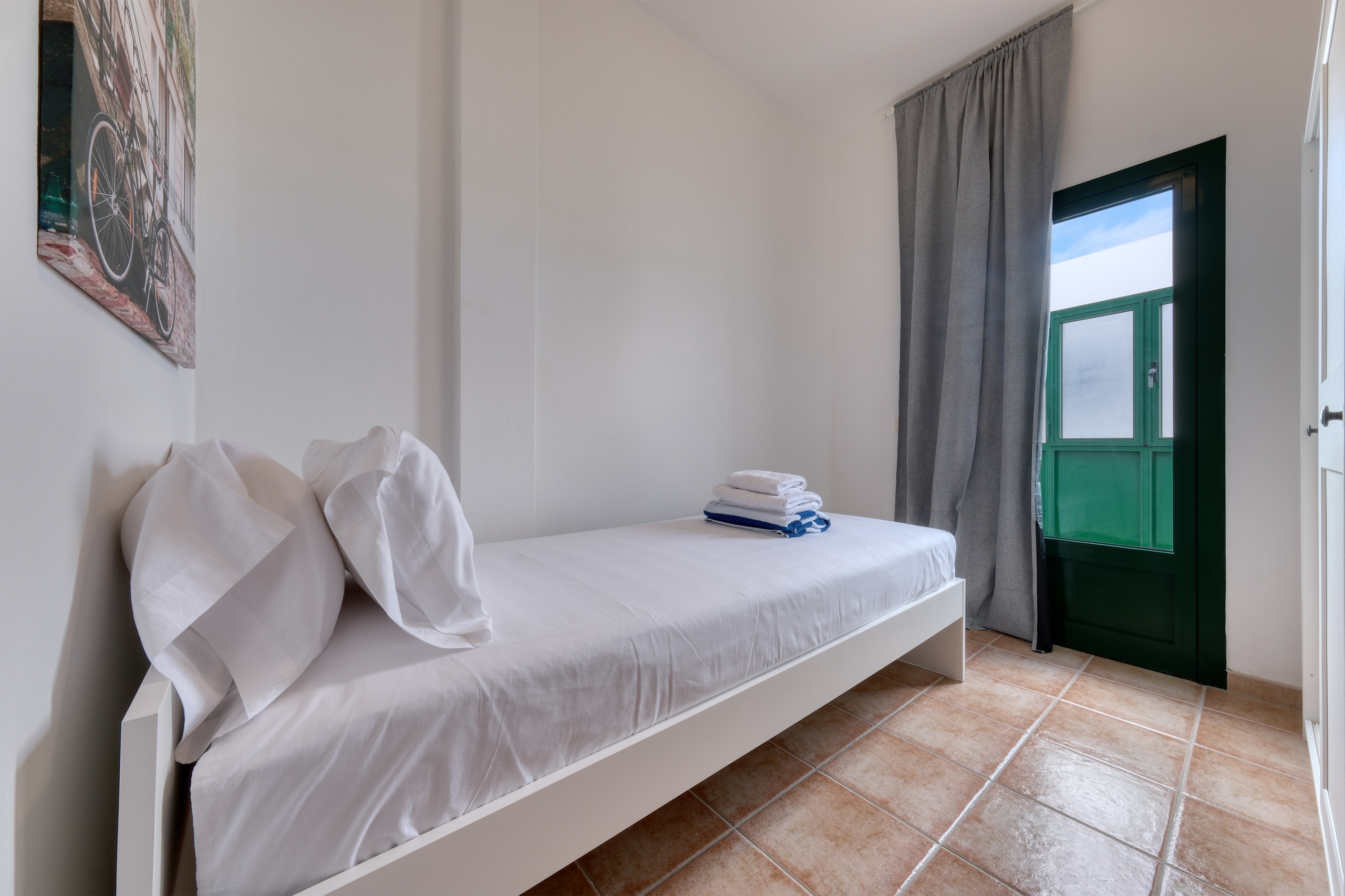 Al piano superiore si trova la zona notte, con due accoglienti camere: una con letto matrimoniale, ideale per riposare dopo una giornata di sole, e un'altra con un comodo letto singolo e balcone privato, perfetta per chi viaggia in famiglia o con amici. Sullo stesso piano troverai il bagno completo, con un pratico piatto doccia e asciugacapelli, pensato per il tuo comfort. Inoltre, mettiamo a tua disposizione una lavatrice, ferro da stiro e asse da stiro, un ventilatore, nonché lenzuola e asciugamani sia da doccia che da spiaggia per permetterti di viaggiare leggero e goderti il soggiorno senza preoccupazioni.
