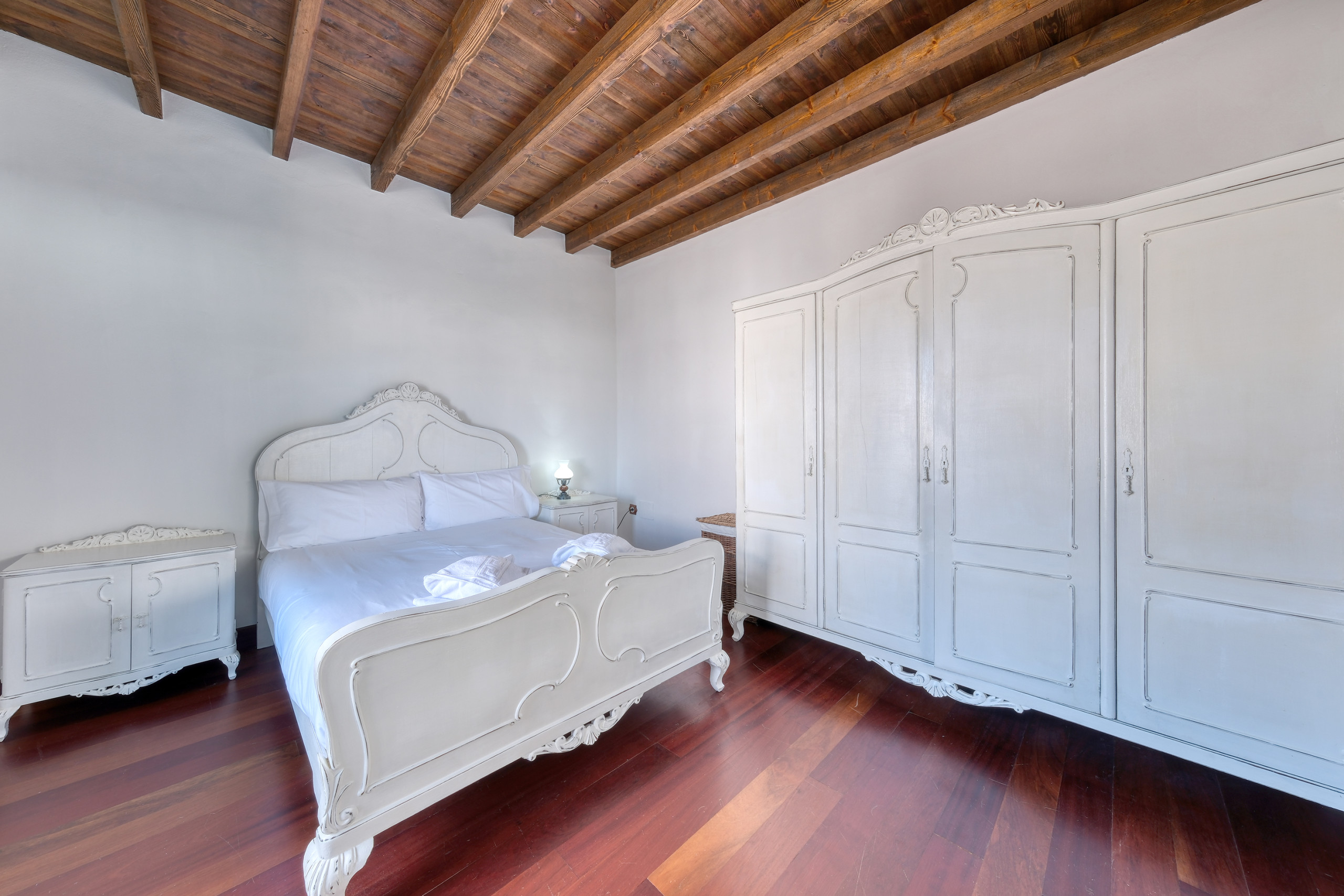 L'abitazione è un duplex con due camere da letto molto confortevoli. Al piano terra si trova una camera da letto con letto king size, cabina armadio e bagno en suite, offrendo la massima privacy e comfort. Al piano superiore, troverai un'altra camera da letto con letto matrimoniale e un ampio armadio.