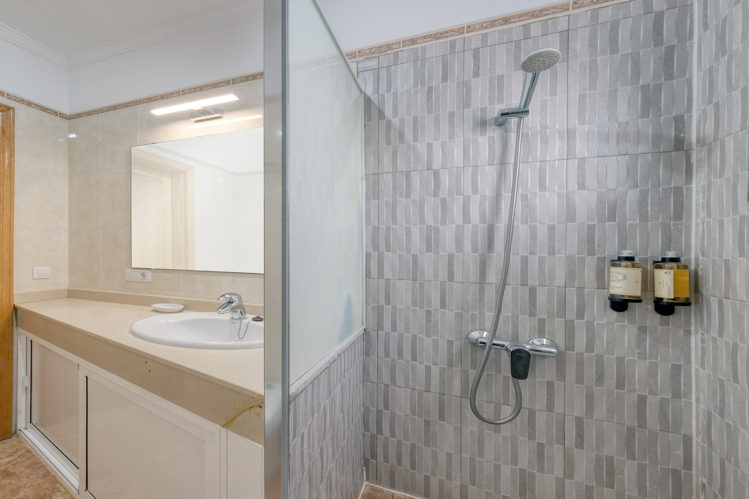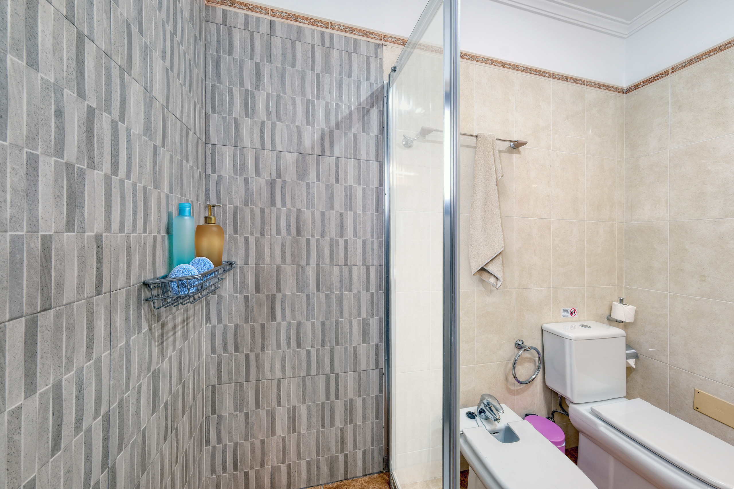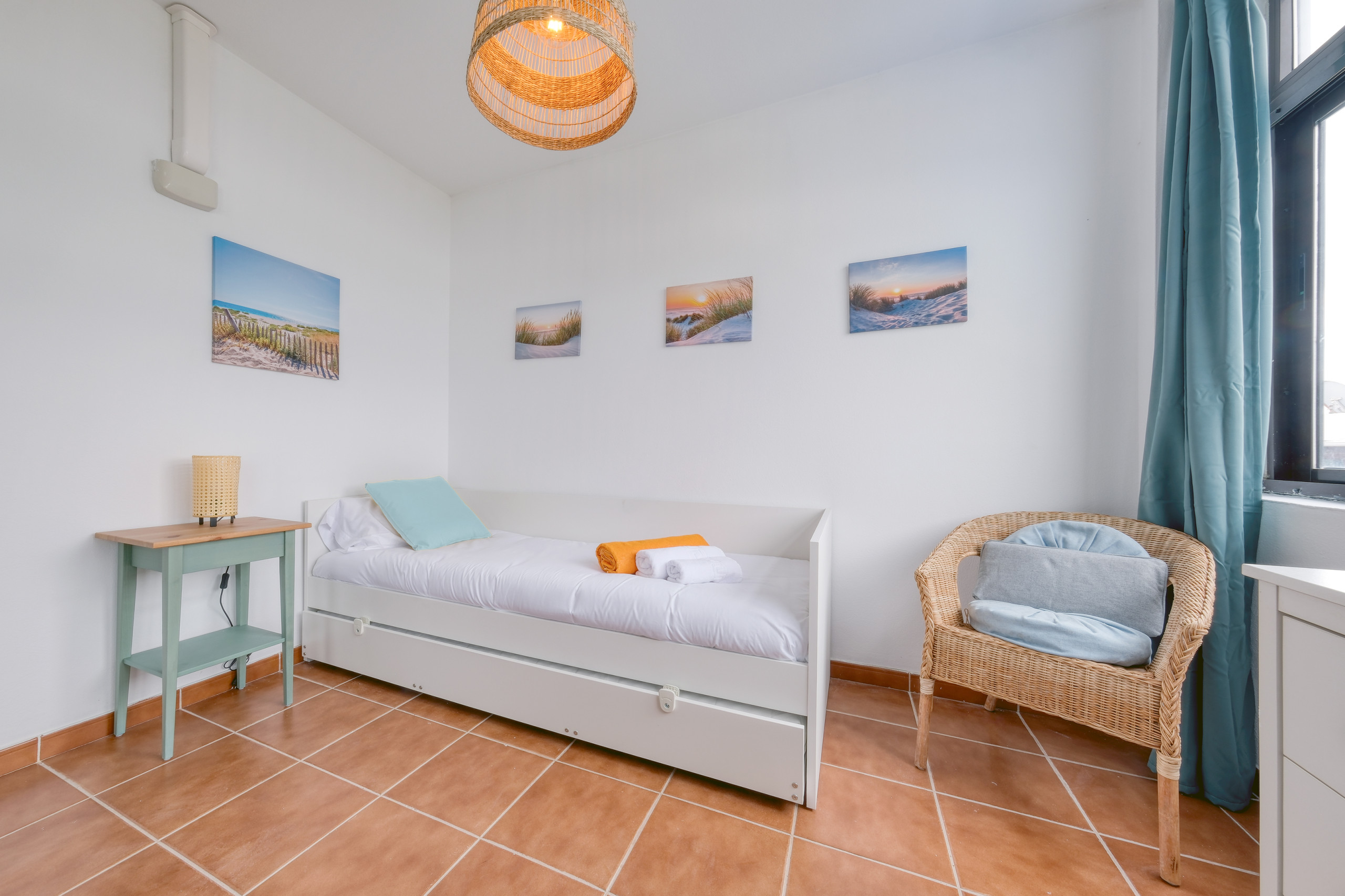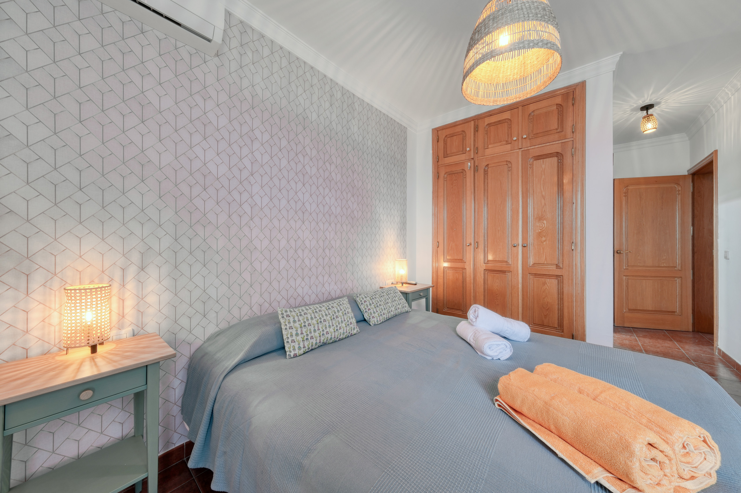 La prima camera da letto dispone di bagno in suite con piatto doccia, un divano letto tipo click clack, aria condizionata, un letto matrimoniale e un ampio armadio. La seconda camera da letto offre due letti da 90 cm, una scrivania, una finestra verso l'esterno, aria condizionata e un ampio armadio. La terza camera da letto dispone anch'essa di due letti separati, una scrivania, armadio e aria condizionata.