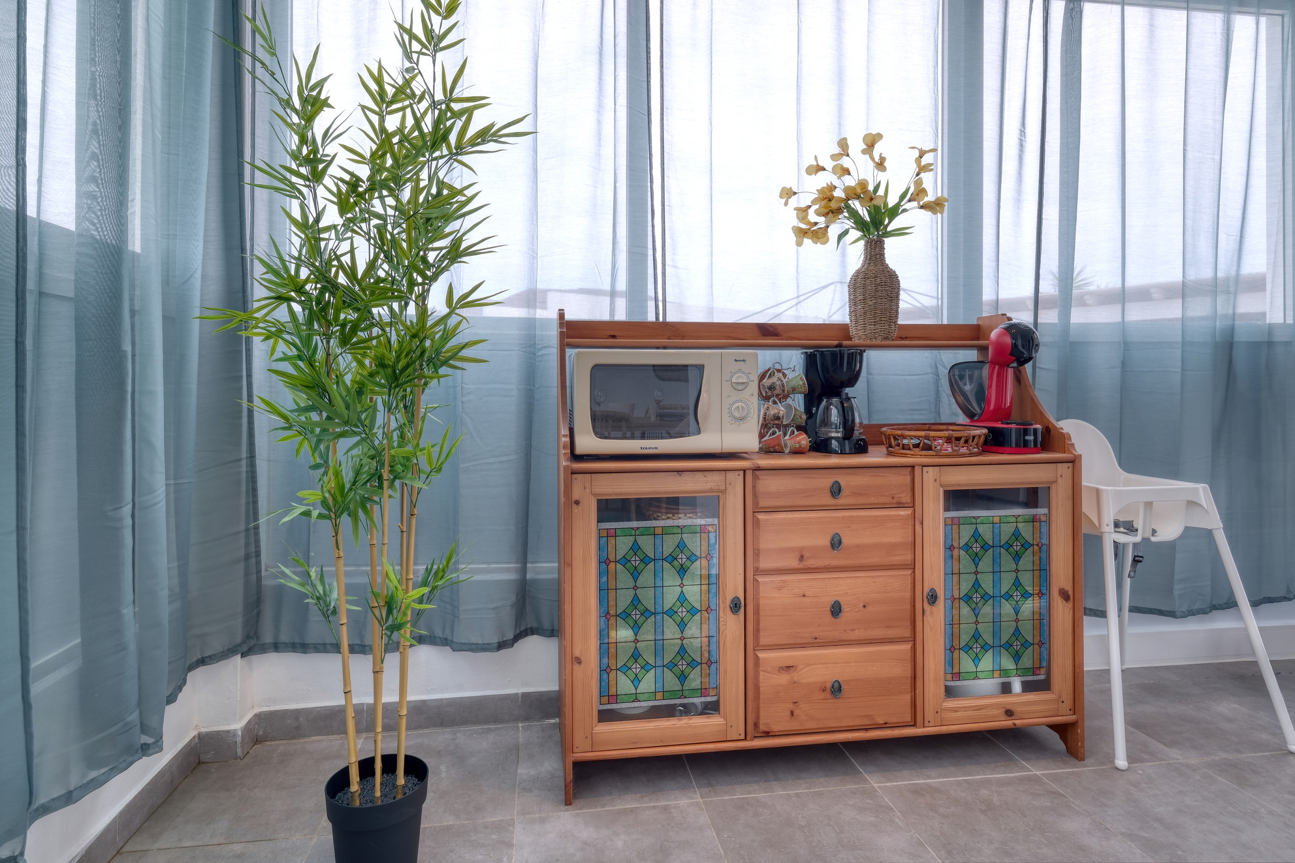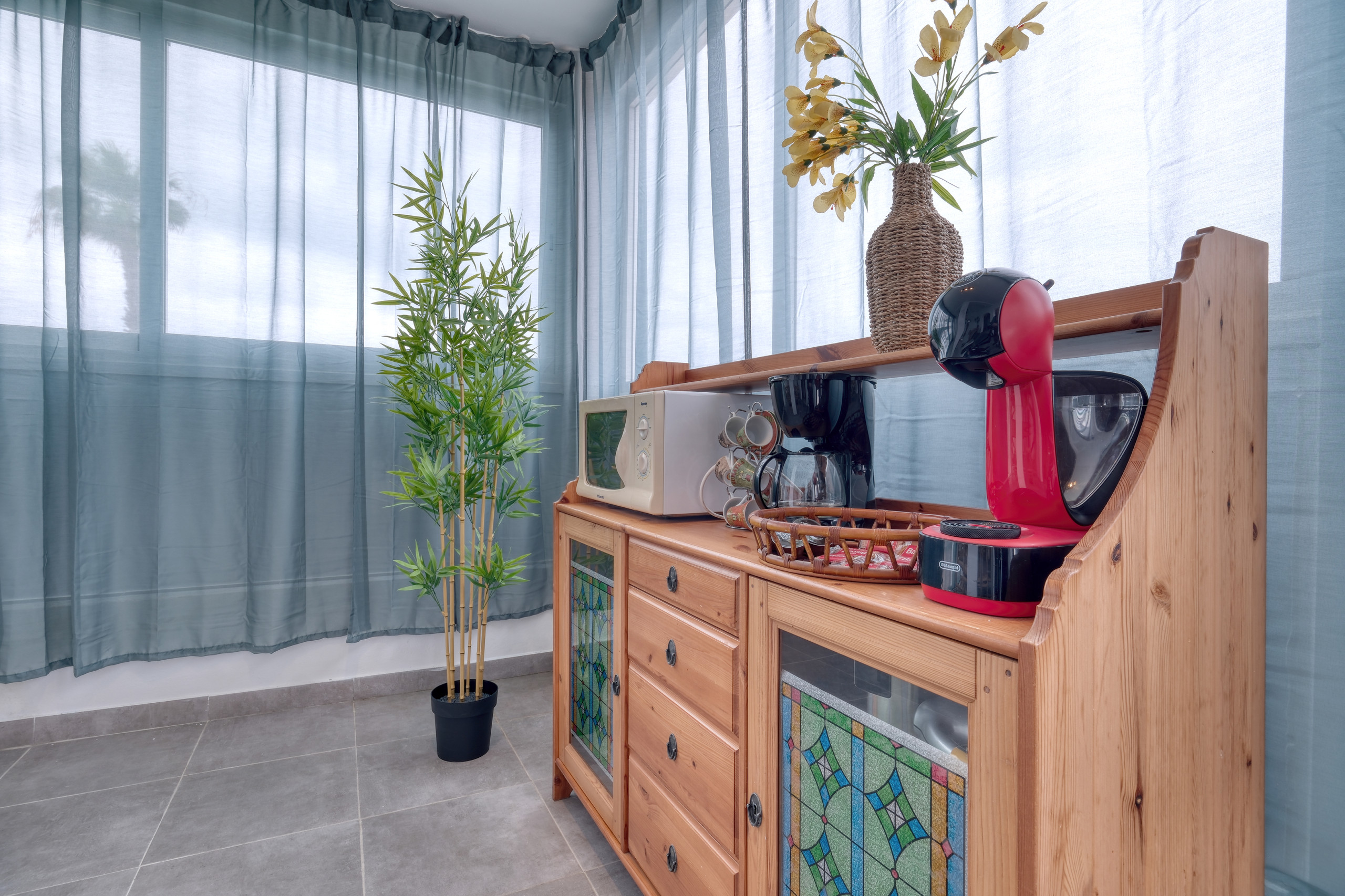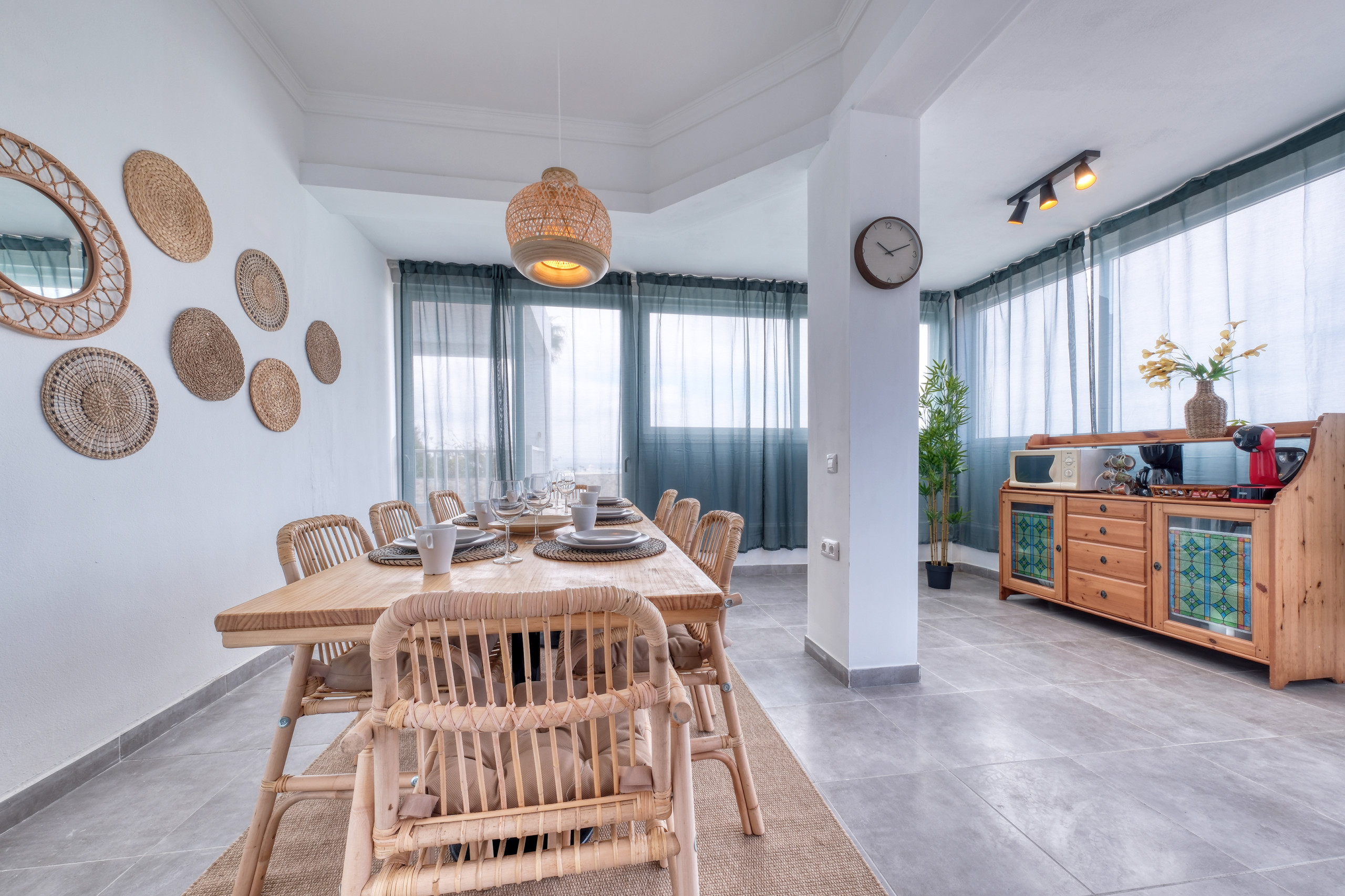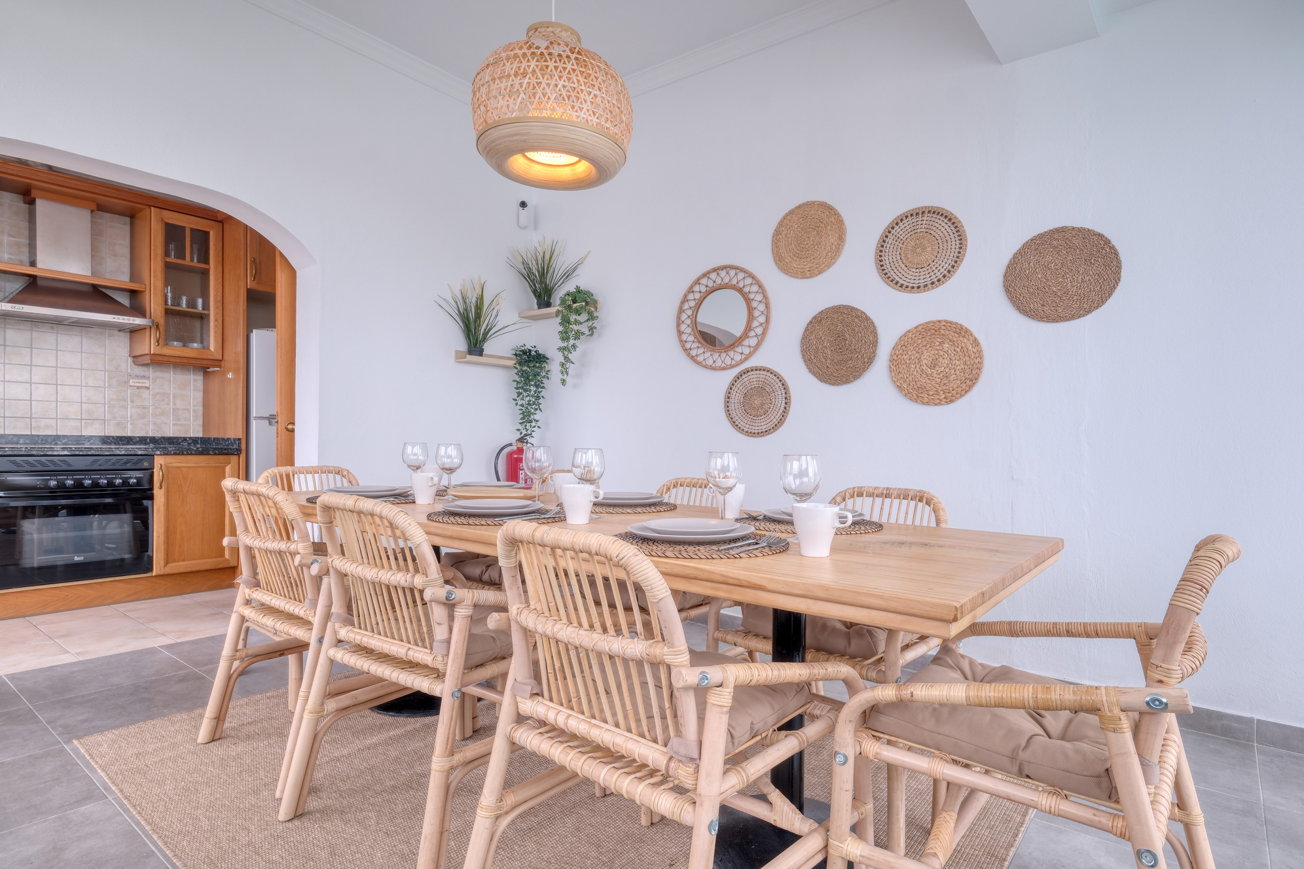 All'ingresso della casa troveranno un ampio divano con vista sulla piscina e un televisore smart con canali satellitari. L'intera abitazione dispone di Wifi in fibra, ideale anche se hanno bisogno di lavorare da remoto. Ha anche una cucina ben attrezzata con stoviglie complete, quattro fornelli, forno, lavastoviglie, microonde, frigorifero, congelatore, tostapane, bollitore e macchina da caffè.
